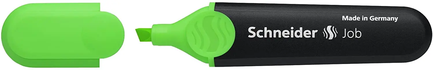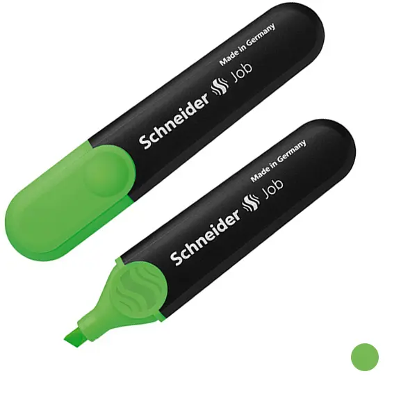 Текст маркер Schneider Job зелен е висококачествен тескт маркер с изключително наситено и издържливо мастило в неонови цветове. Подходящ е за подчертаване на важна информация и по-лесното й намиране в текста. Удобен е за нанасяне върху стандартна, копирна и факс хартия.