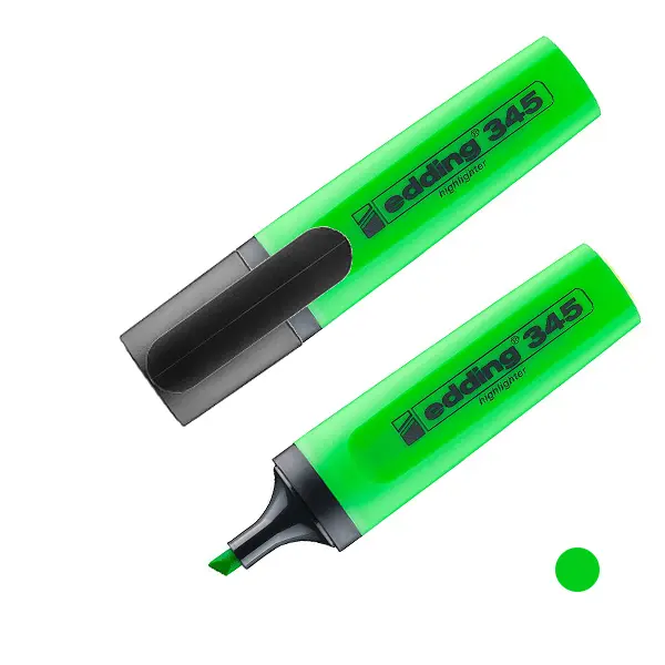 Текст маркер Edding Е-345 зелен е надежден неонов текст маркер, тъй като издържа дълго време без капачка. Удобен е за презареждане с мастило HTK-25 и е подходящ за нанасяне върху всички видове хартия и картон.