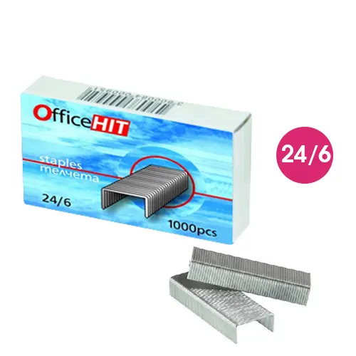 Здрави и надеждни телчета за телбод Office Hit 24/6, подходящи за ежедневна употреба в офиса, училището или вкъщи. Идеални за бързо и сигурно захващане на документи.