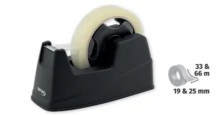 Настолната тиксорезачка Spree Combi 33 и 66 м притежава тежка основа и метален резец за гарантирана стабилност.