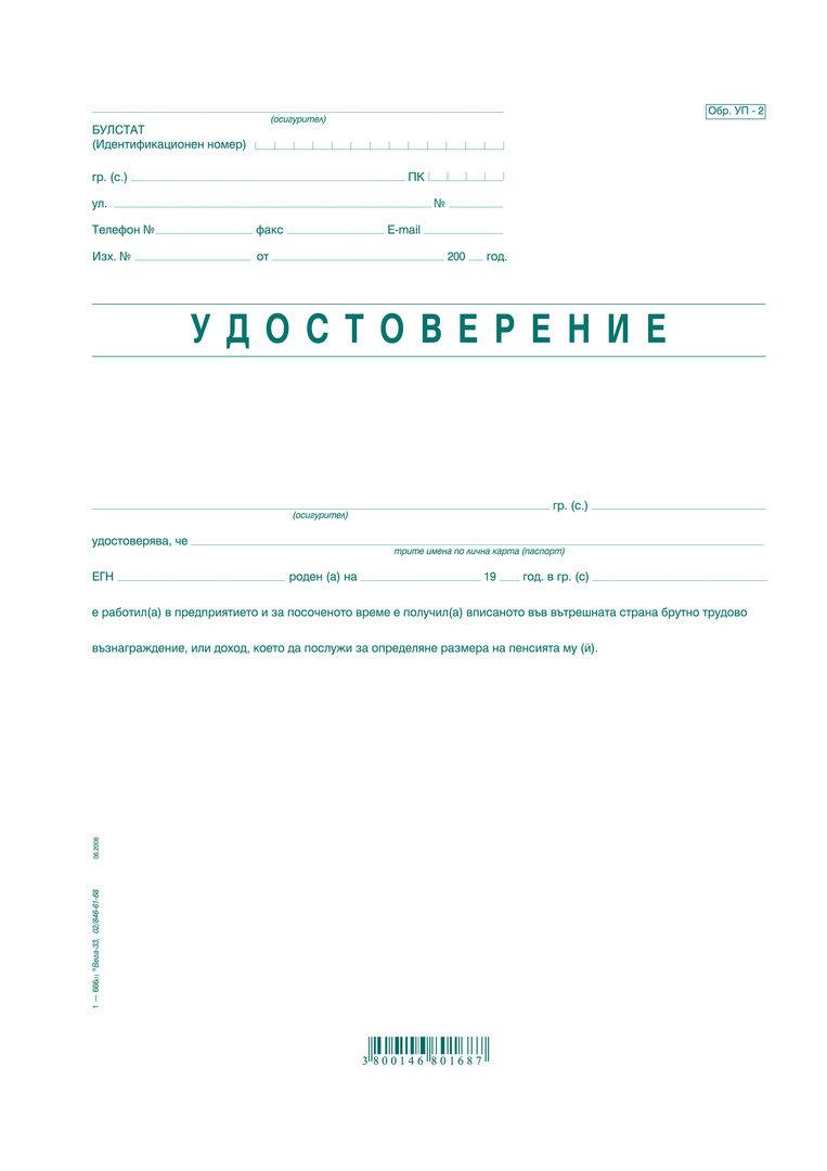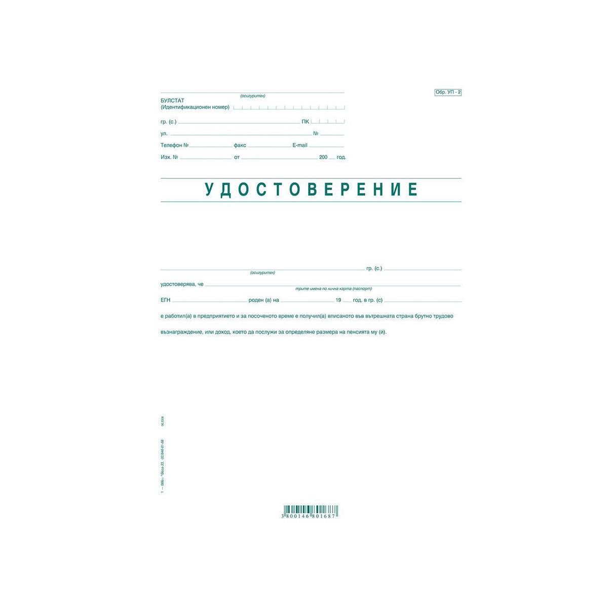 - Удостоверение за трудово възнаграждение УП-2 от вестникарска хартия