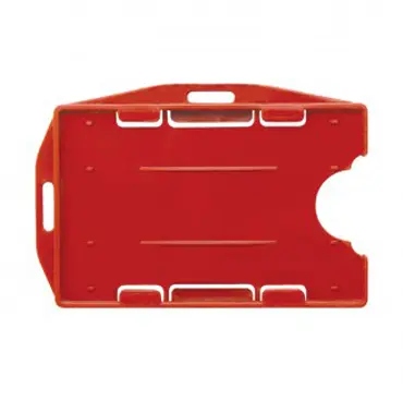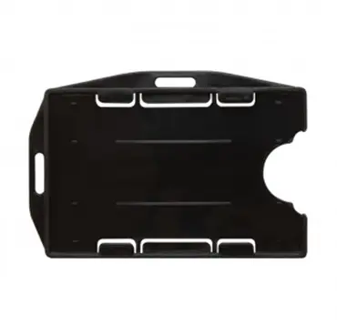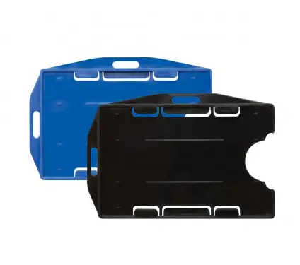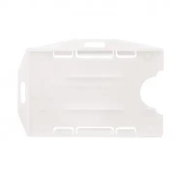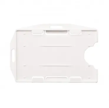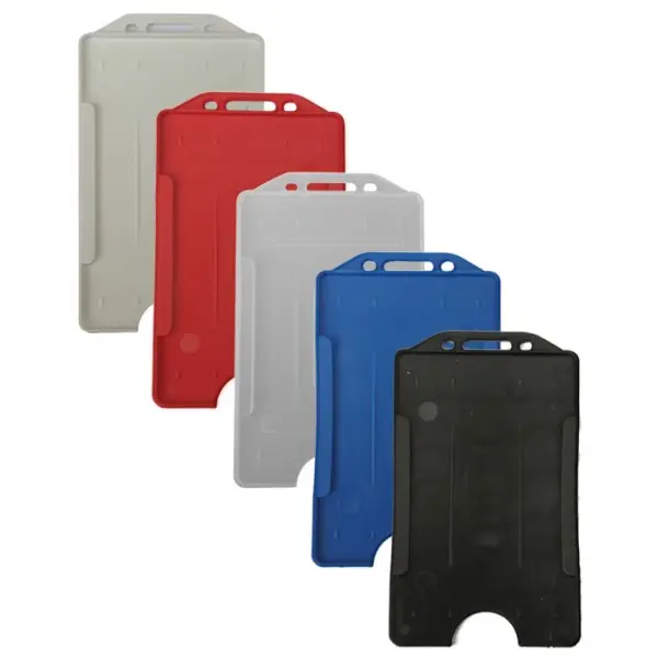 Вертикалният бадж 85х55 мм е изработен от твърда и висококачествена пластмаса. Притежава универсално захващане с три отвора и е подходящ за легитимационни или магнитни карти.