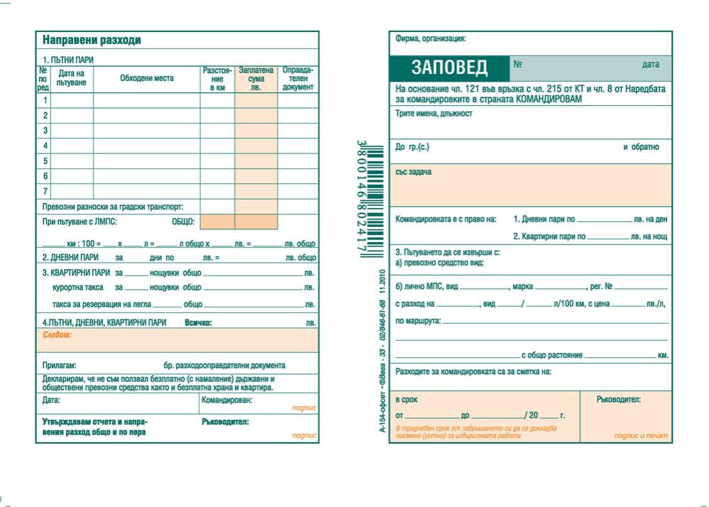 - Заповед за командировка от офсетова хартия