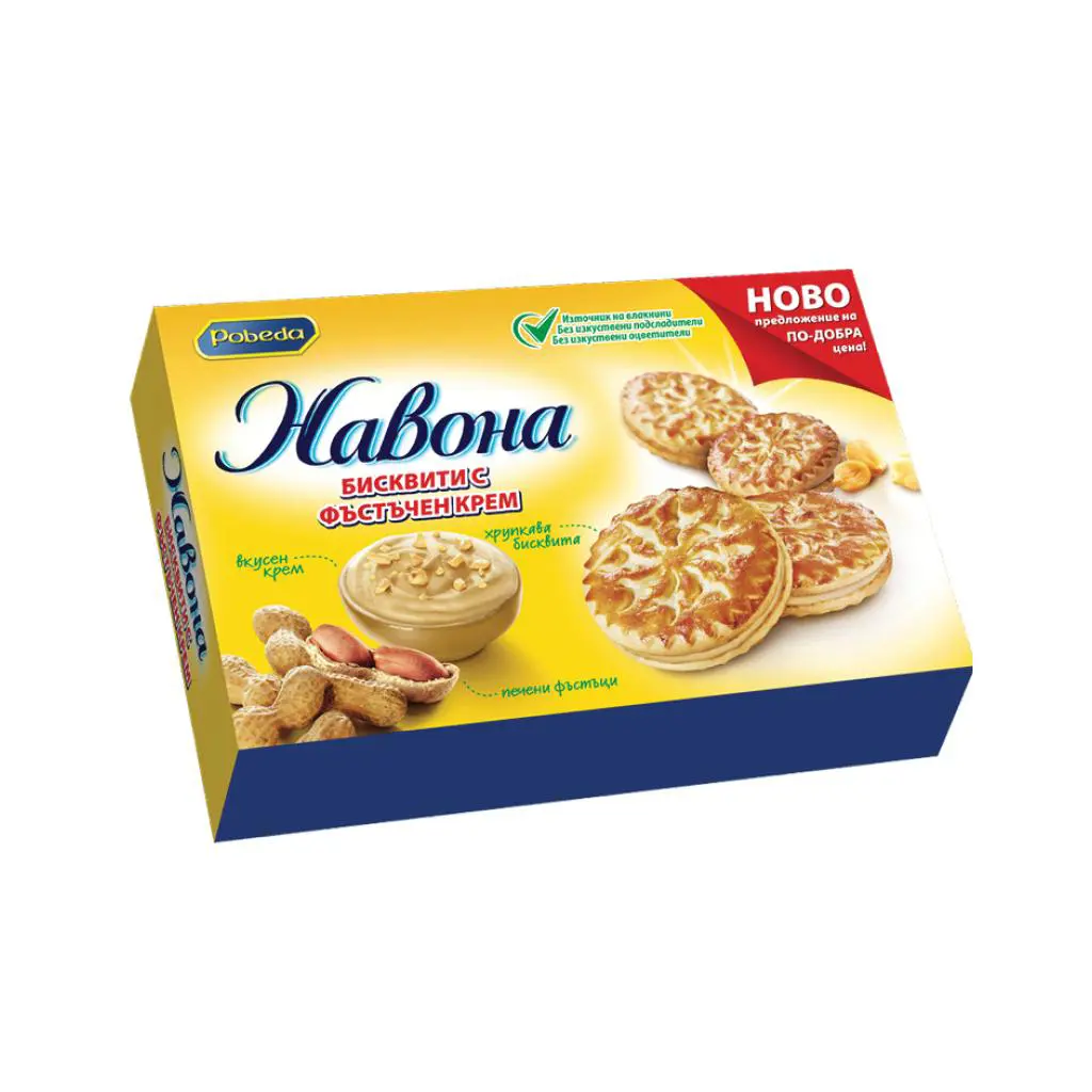 Сандвич бисквити с богат фъстъчен крем, съдържащ печени фъстъчени ядки с богат и плътен аромат. Продуктът има атрактивна гравюра със златист цвят и се радва на постоянен интерес на българския пазар.