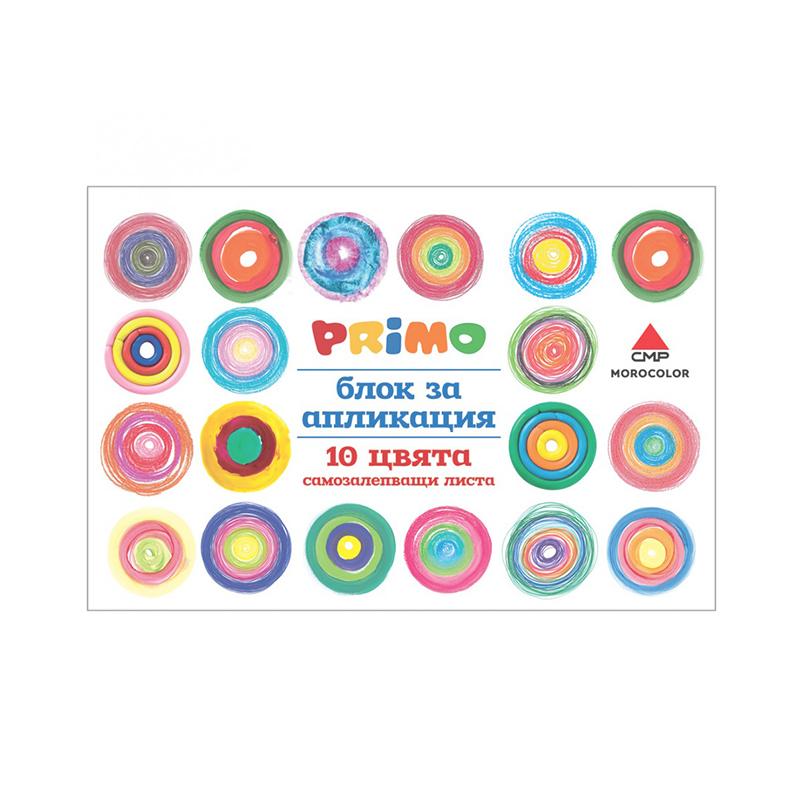 Блокът за апликация Primo представлява самозалепваща се хартия в десет цвята. Подходящ е за всякакъв тип изобразително изкуство.