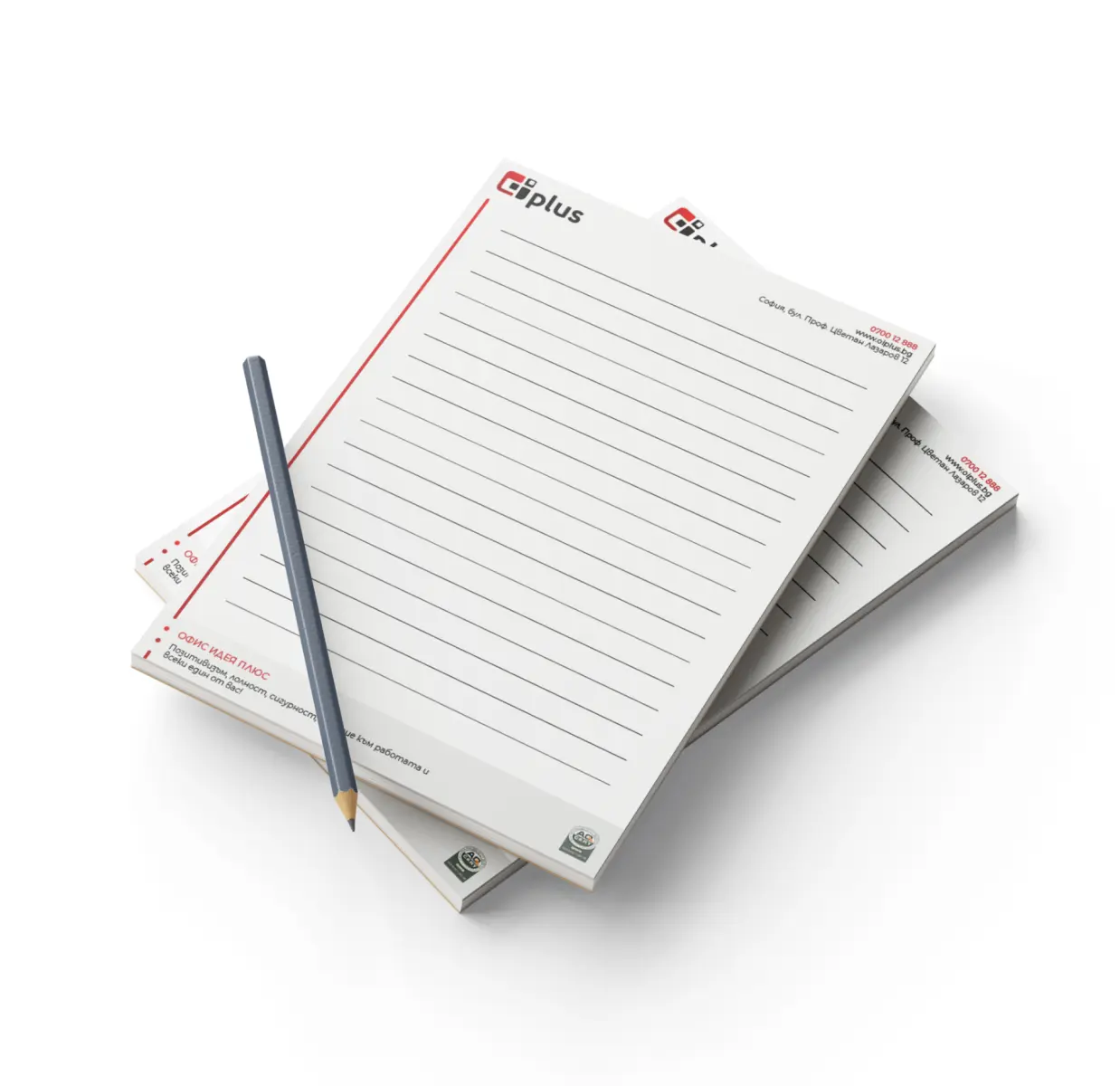 Блокнотите са незаменим помощник в ежедневието – както в офиса, така и у дома. Те са идеални за водене на бележки, записки от срещи, задачи, идеи или като фирмени подаръци с персонален дизайн. Предлагаме изработка на блокноти по индивидуален проект или по готов файл.