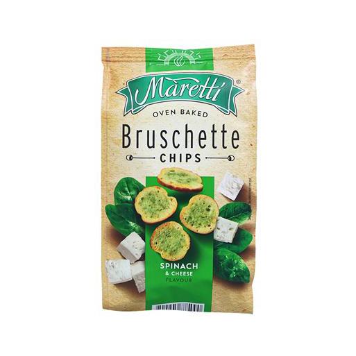 Брускети Марети със спанак и сирене са хрупкави брускети в италиански стил. Всяко кръгче е нежно изпечено и подправено с неустоима комбинация от пресни листа спанак и ароматно сирене.