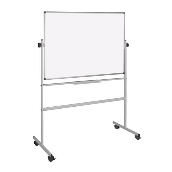 Мобилната бяла дъска 100х150 см е практична училищна и презентационна мебел. Благодарение на подвижните колелца дъската може да се използва в многобройни помещения и класни стаи, като по този начин е и нискобюджетно решение. Също така бялата дъска предоставя фунцията за хоризонтално завъртане, като по тази начин може да се използва двустранно. Заключващият се механизъм пък осигурява стабилност при работа.