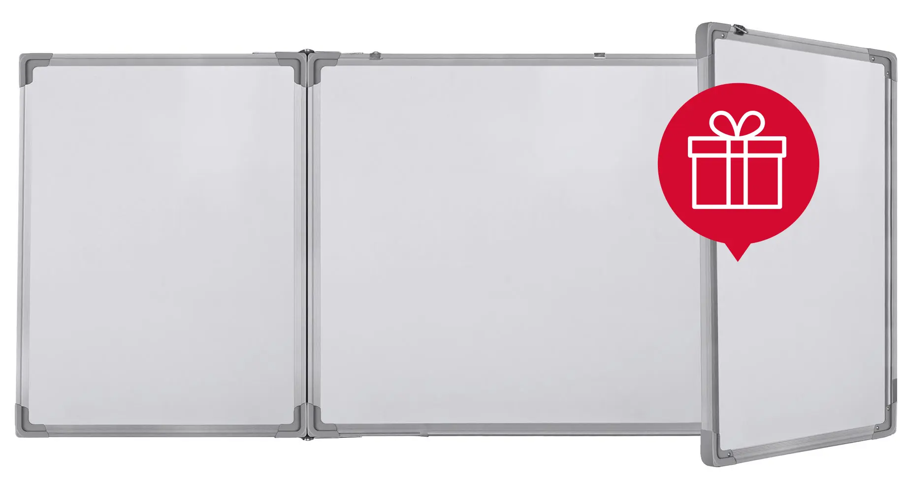Бяла магнитна дъска 120х480 см тройна с алуминиева рамка - в подарък с комплект маркери за бяла дъска Spree