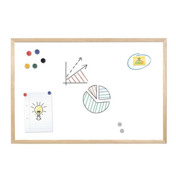 Бялата магнитна дъска с дървена рамка 30х40см е подходяща за визуално представяне на информация под формата на диаграми, мисловни карти, таблици и др. Дъската е лесна за почистване и е подходяща за употреба в дома, училище и офиса.