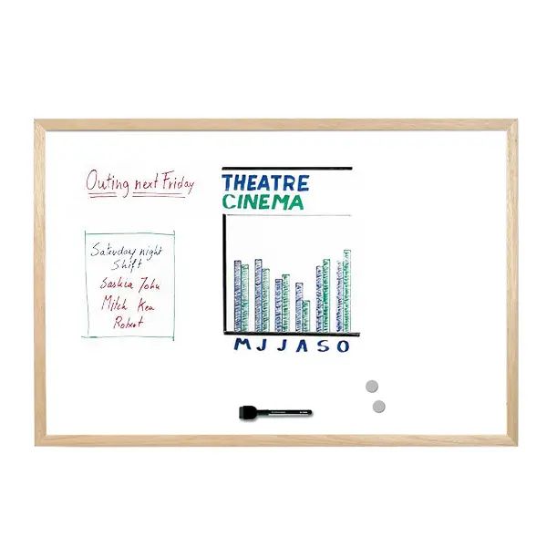 Бялата магнитна дъска 40/60 с дървена рамка е предназначена за интензивна ежедневна употреба и писане с маркери за бяла дъска по време на обучения, срещи, конференции висококачествена лакирана повърхност. Дървената рамка е произведена от иглолистна дървесина. Дъската е лека и е оптималният вариант за нормална употреба. Включва поставка за маркери и магнити.