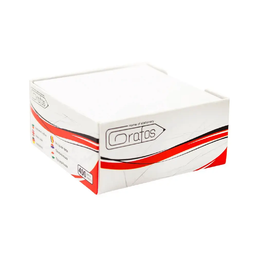 Бяло кубче 83х83 мм 400 л е бяло кубче с картонена поставка, подходящо е за отбелязване на страници на документи, а също така и за записване на важна информация.