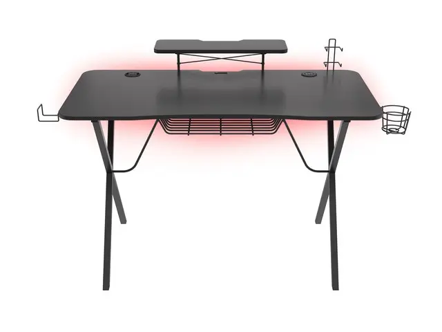 Genesis Holm 300 RGB е гейминг бюро, което ще ви осигури просторно и удобно място, където са поставите всички ваши гейминг устройства. Положението на екрана е от голямо значение, за да избегнете умората в очите си и за да бъде тялото ви в правилно положение по време на дългите гейминг маратони. Затова това бюро е оборудвано с махаща се удобна стойка за монитор, която ви дава оптимален комфорт и ви осигурява повече свободно място. Holm 300 разполага с поставка за чаша, която може да монтирате в лявата или в дясната част на бюрото. В допълнение бюрото е снабдено с отделение за организиране на кабелите, а при желание от ваша страна може да инсталирате допълнителна табла, върху която да поставяте храни или напитки. Бюрото разполага с три USB порта и интегрирано зарядно, което ви позволява да зареждате смартфон и други устройства безжично. За още по-добро гейминг изживяване, това бюро разполага с LED подсветка, чиято скорост, цвят и режим на работа може да бъде контролирана дистанционно.