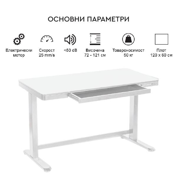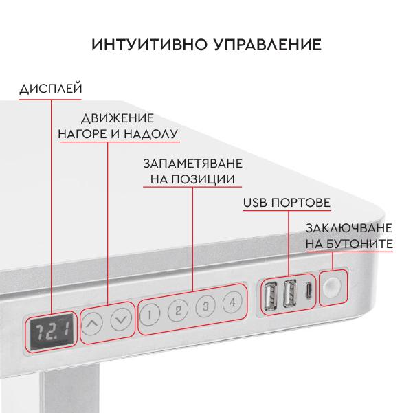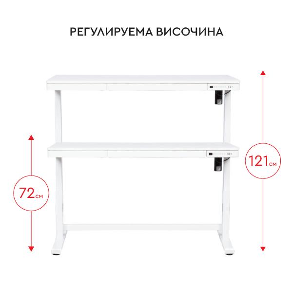 Бюро регулируемо КУКУШ B10 е модел с регулируема височина, което има възможност за запаметяване на четири позиции в зависимост от предпочината от вас височина. Разполага с електронен панел за лесно регулиране, чекмедже и USB портове за зареждане. В допълнение бюрото притежава и специален сензор, който спира движението на плота при удар в друг предмет.