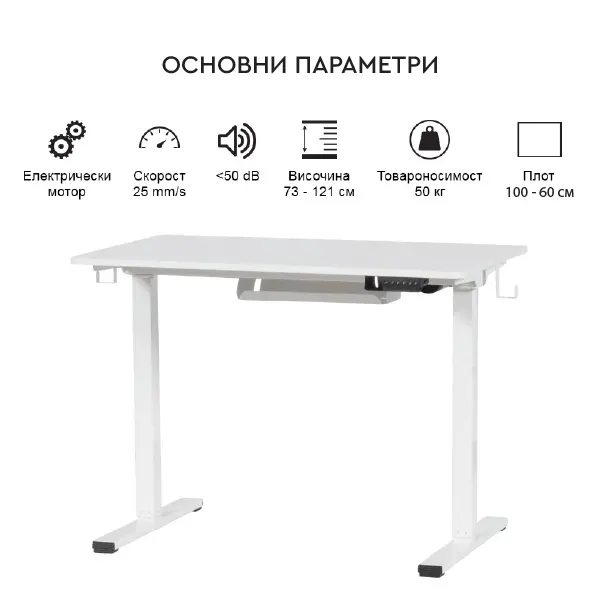 Бюро регулируемо КУКУШ B12 е с регулируема височина от 73 до 121 см. То е с електронен панел за управление, от който можете да запаметите и 4 позиции с различна височина. Освен това, моделът разполага със сензор против сблъсък, USB портове, кошница за кабели и удобни закачалки.