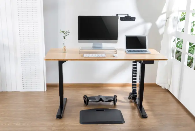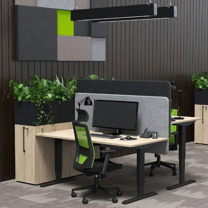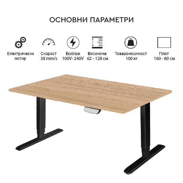 Бюро регулируемо ЛИБРЕ U2 осигурява комфорт и гъвкавост, което ви позволява да регулирате височината си с лекота. С елегантен плот от кехлибарен дъб и стабилни метални крака в черно, това бюро е идеалното допълнение към всяко модерно работно пространство.