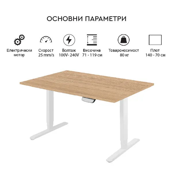 Бюро регулируемо ЛИБРЕ U4 е с регулируема височина в диапазон от 710 до 1190 мм, бюрото позволява да избереш нивото според собствените си желания. С един електрически мотор и възможност за запаметяване на три предпочитани височини за работа, промяната става лесно и удобно. С максимална скорост от 25 мм/сек, бюрото предлага бързо и плавно движение нагоре и надолу, като същевременно осигурява комфорт и ефективност по време на работа.