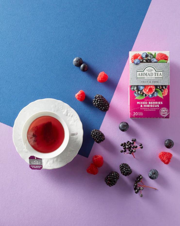 - Хибискус, Шипка, Ябълка, Сладки листа от къпина, Портокалова кора, Бъз, Боровинки, Къпини, Малини