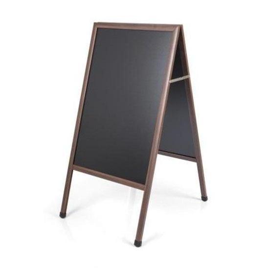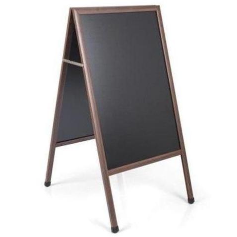 Черната дъска за меню е двустранна свободностояща конструкция с елегантен дизайн, подходяща за употреба в ресторанти, кафенета, бутици и други търговски обекти. Тя е идеална за представяне на информация, която подлежи на ежедневна или честа актуализация. Създава усещане за уют и в същото време служи като ефективен инструмент за предаване на директни послания. Съчетава традиционен стил с модерна визия и е завършена с елегантна рамка в цвят орех.