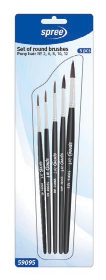 Комплектът с четки от Spree съдържа пет броя кръгли четки. Идеални са за хоби и крафт, детски рисунки, в училище или при терапевтична работа.