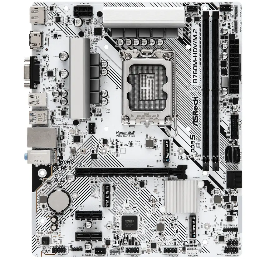 | Интерфейс | 2 Antenna Mounting Points, D-Sub Port, HDMI Port, DisplayPort 1.4, USB 3.2 Gen1 Type-C Port, 3 USB 3.2 Gen1 Type-A Ports, 2 USB 2.0 Ports, RJ-45 LAN Port, HD Audio Jacks: Line in / Front Speaker / Microphone |