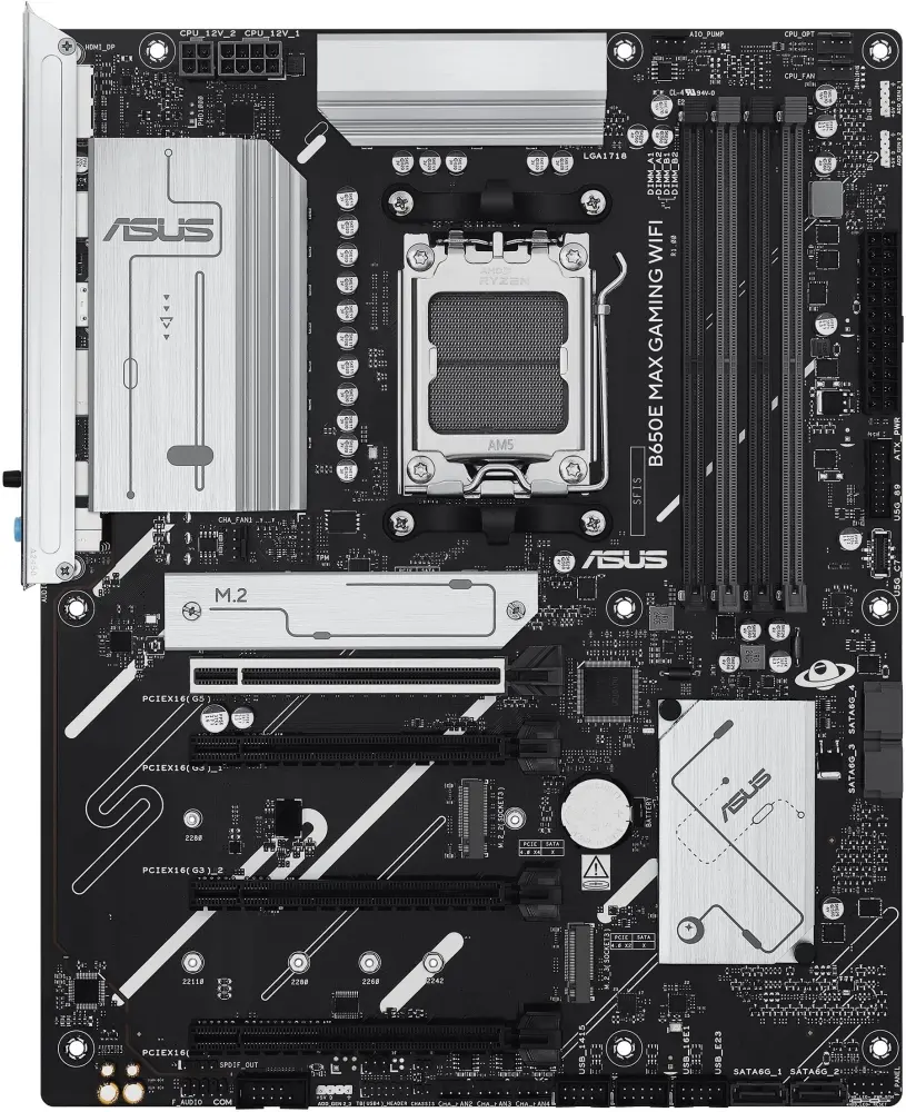 | Слотове | PCIe 5.0 x16 slot (supports x16 mode) (AMD Ryzen 9000 & 7000 Series Desktop Processors), PCIe 4.0 x16 slot (supports x8/x4 mode) (AMD Ryzen 8000 Series Desktop Processors) |