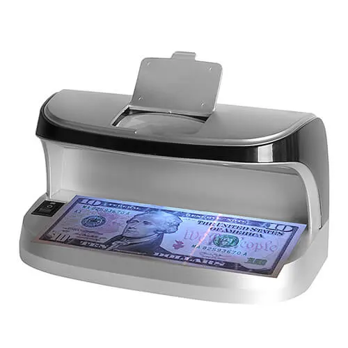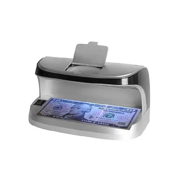 Детектор за фалшиви банкноти AL-11 е преносим и надежден детектор за пари, предназначен за бърза и точна проверка на банкноти чрез ултравиолетово (UV) LED осветление. Моделът комбинира няколко технологии за удостоверяване, което го прави подходящ за магазини, офиси, търговски обекти, мобилни търговци и места без постоянен достъп до електрозахранване. Устройството позволява лесно откриване на фалшиви банкноти чрез UV светлина, флуоресцентно осветяване, магнитен сензор и вградена лупа, като по този начин осигурява многопластова проверка на автентичността.