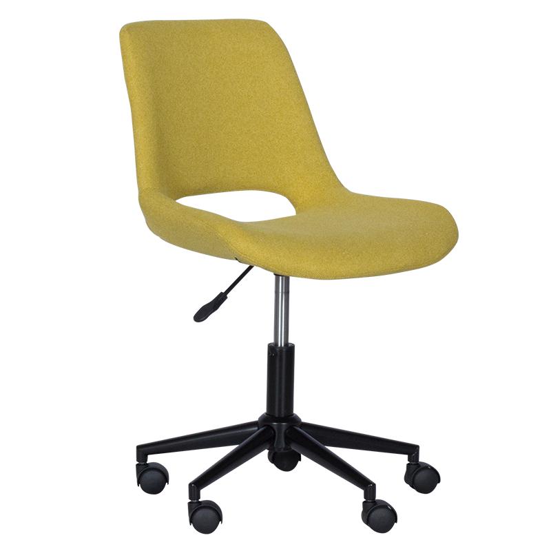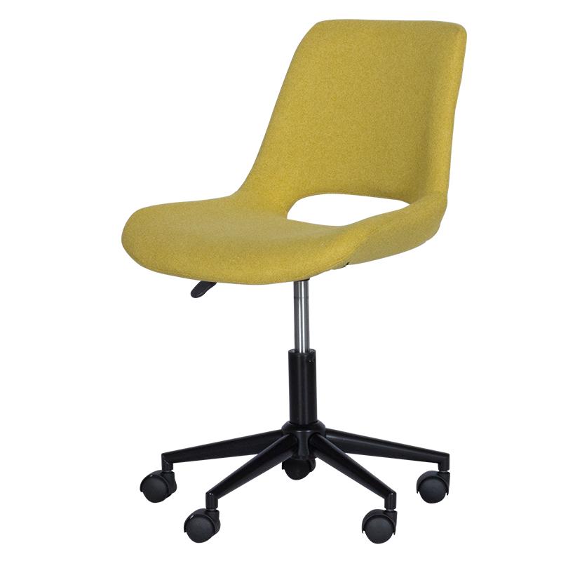 Детски стол ТИА се отличава с модерен дизайн и нестандартна форма на седалката и облегалката. Изработен е от висококачествена дамаска и основа от праховобоядисан метал с колелца.