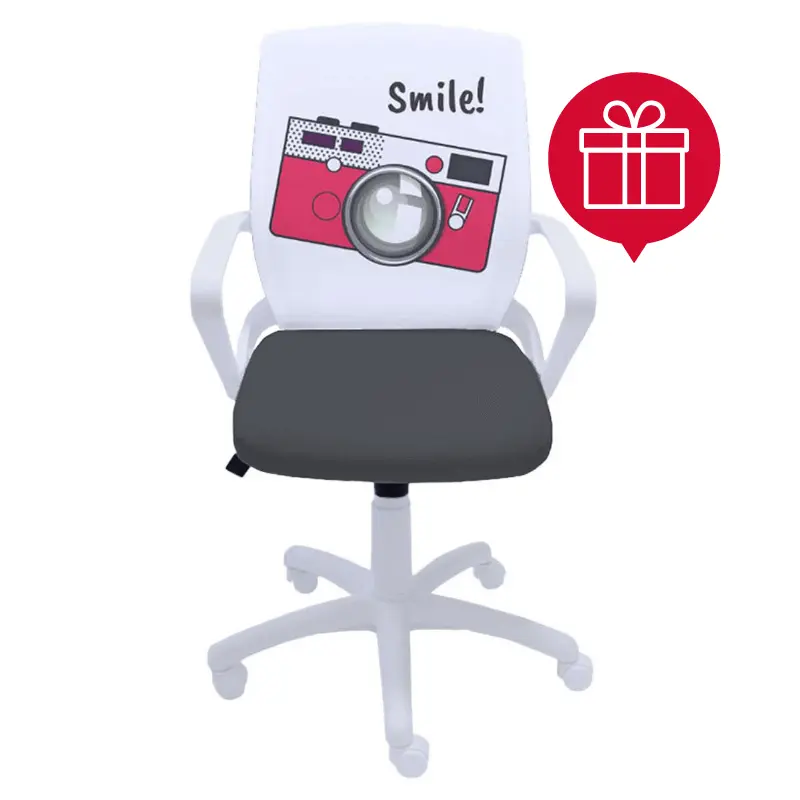 Детският стол УСМИВКА отговаря на изискванията за комфорт и оформяне на правилна стойка на гърба. Едновременно с това столът притежава интересен дизайн с фотоапарат, като приканва всяко дете да се усмихне. С подарък 12 броя цветни моливи Spree Woodfree