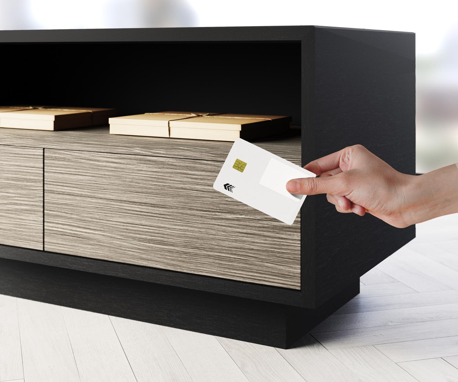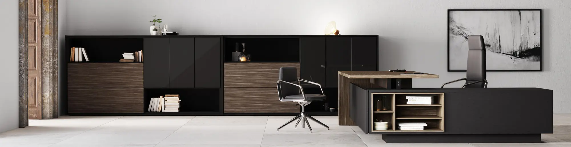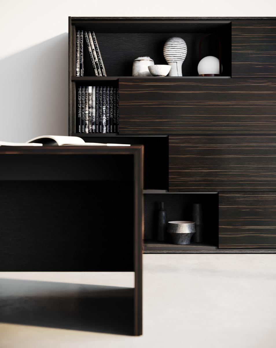 За декорация на фасадите на монолитните, едно- и двукрилни шкафове с височина 158,3 см и 196,7 см, освен меламин, фурнир и FENIX®, се използва лакирано стъкло с дебелина 4 мм BLACK 10 или GREY LONDON 71.