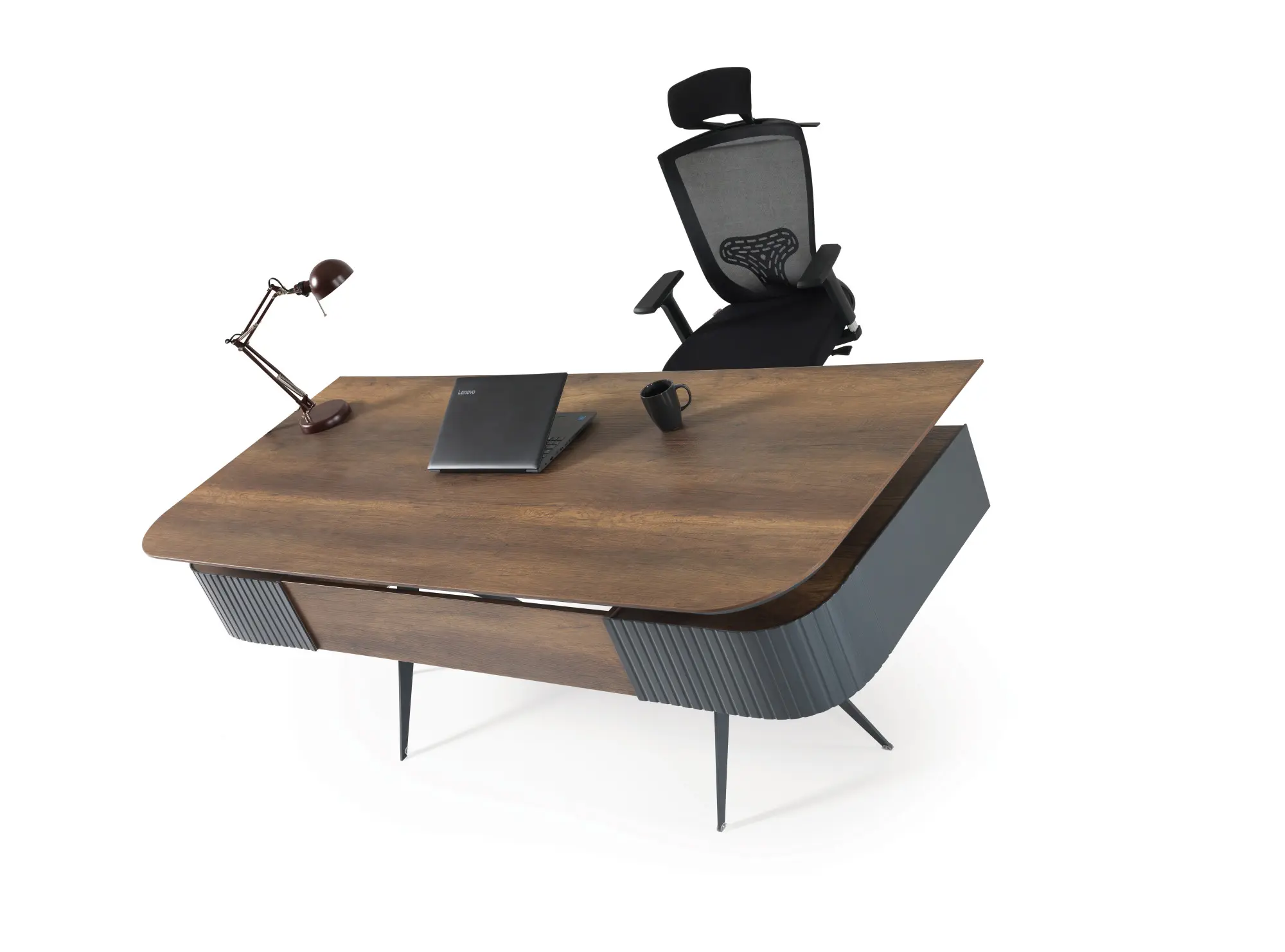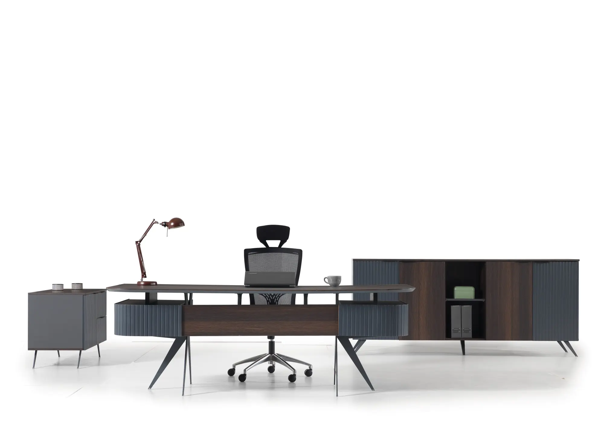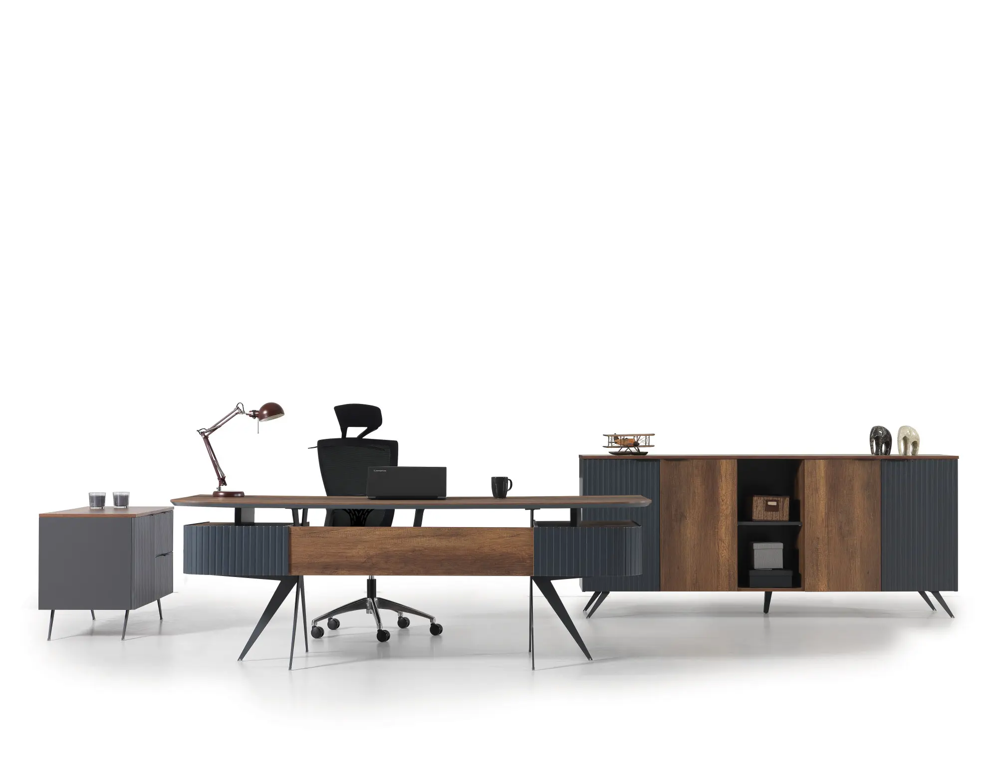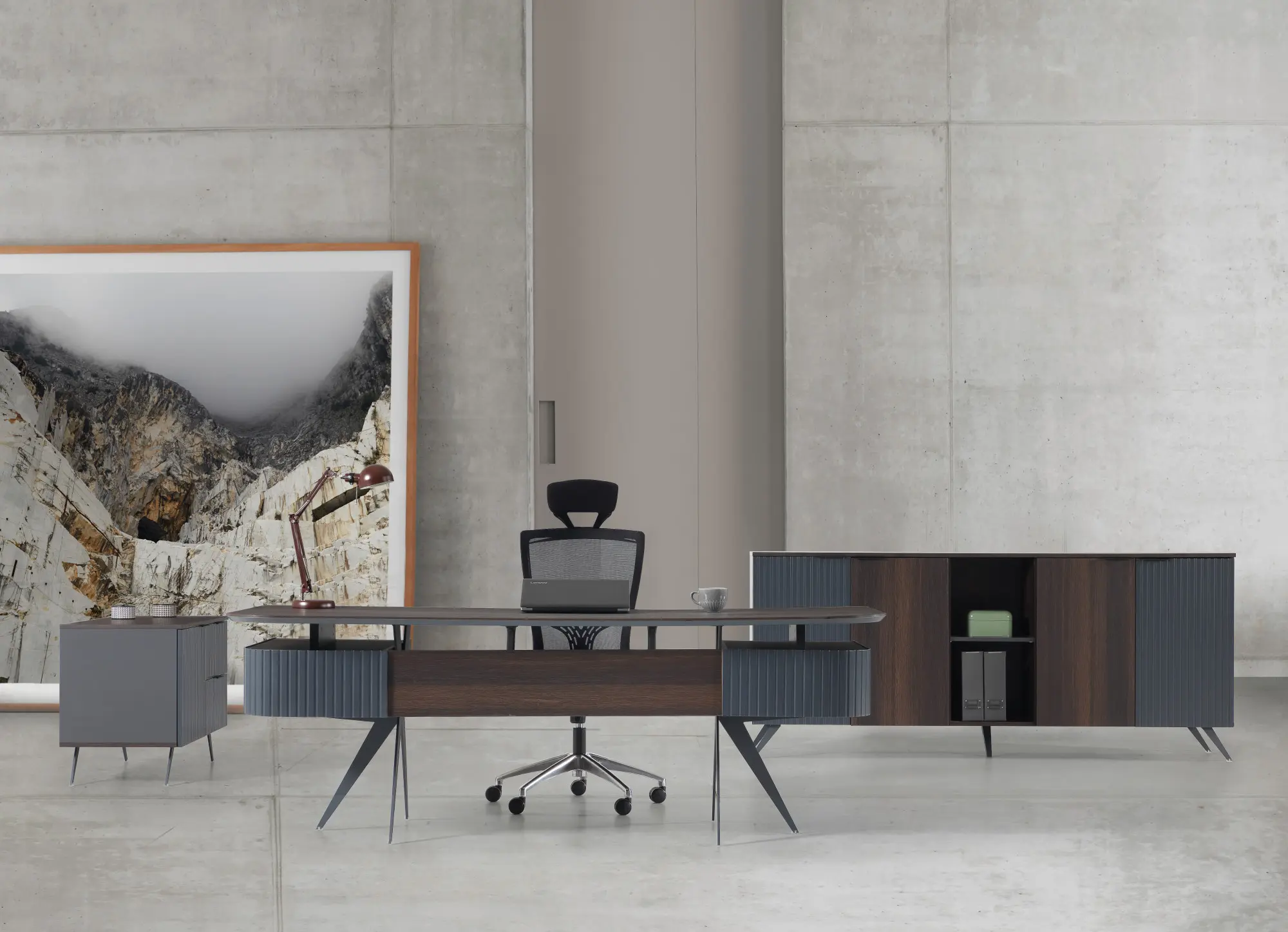 - Дръзко съчетание на дървен материал с тъмни релефни детайли