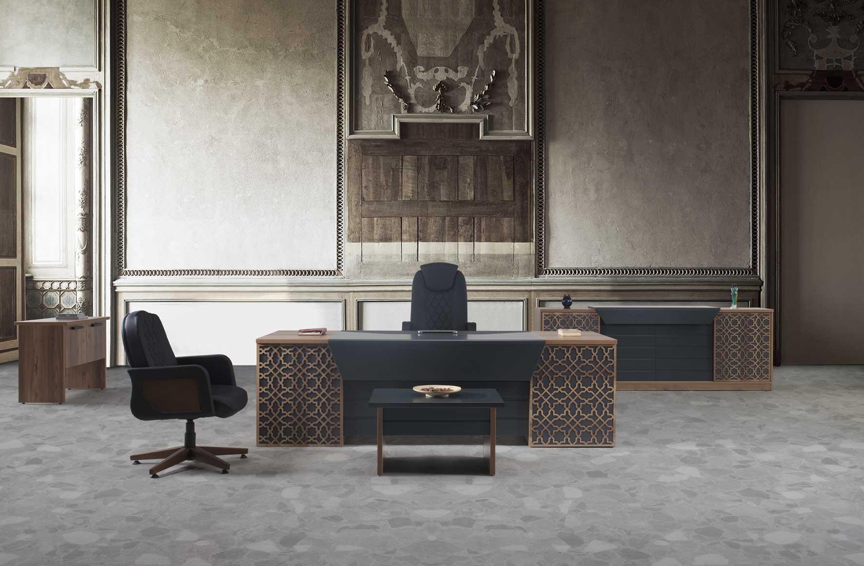 Директорски кабинет ROYAL придава елегантност и уникалност, като комбинира функционалност с изтънчен външен вид.