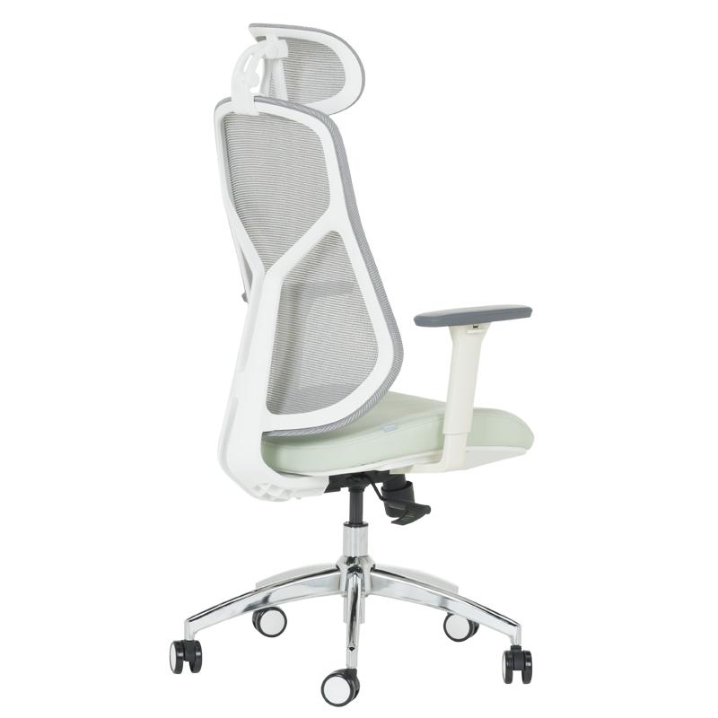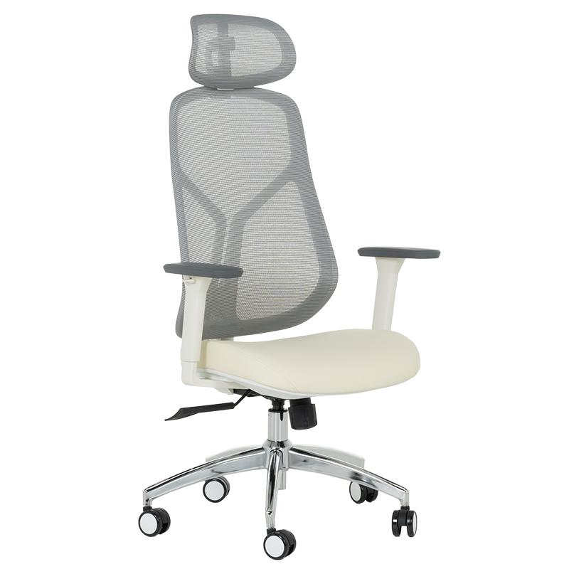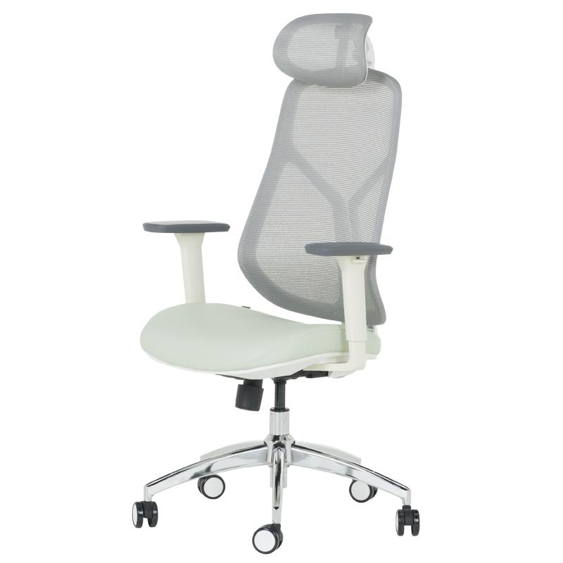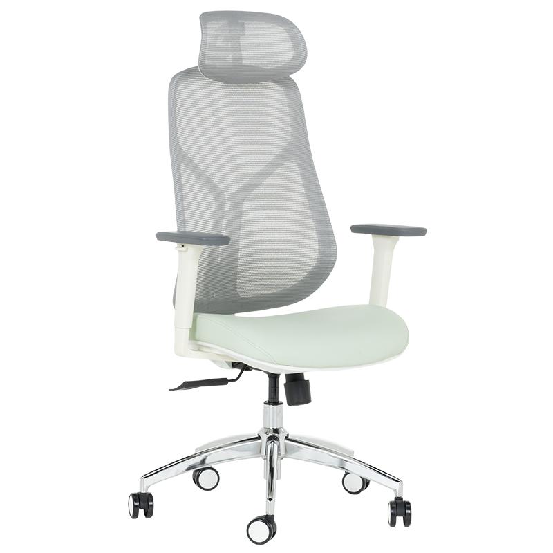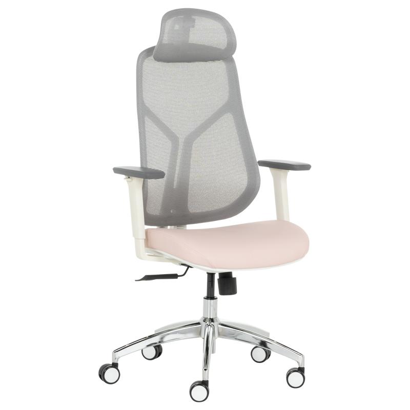Директорски стол АНГЕЛА е с модерен дизайн, удобна, мрежеста облегалка, регулируем подглавник и регулируем люлеещ механизъм.