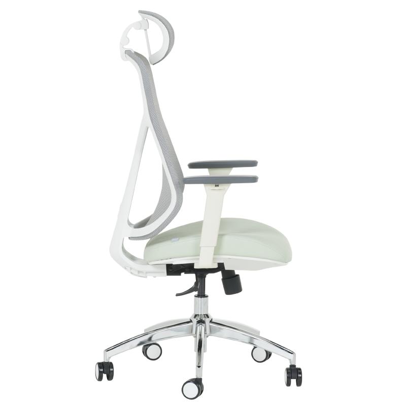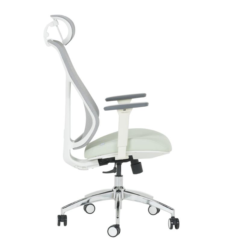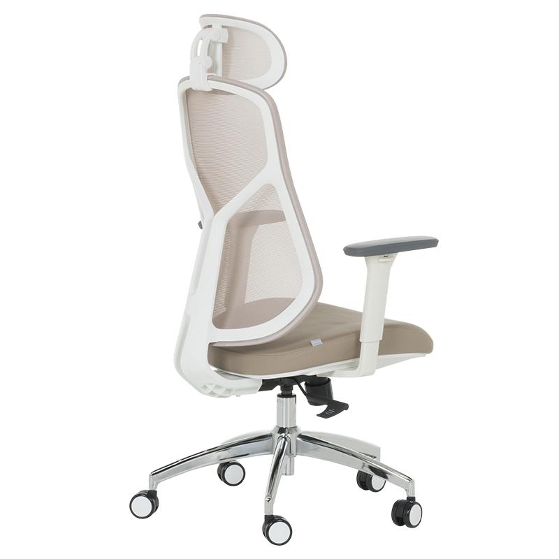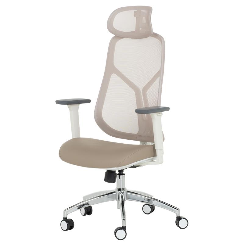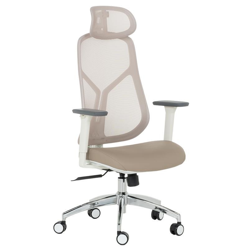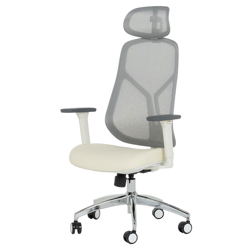 Директорски стол АНГЕЛА е с модерен дизайн, удобна, мрежеста облегалка, регулируем подглавник и регулируем люлеещ механизъм.