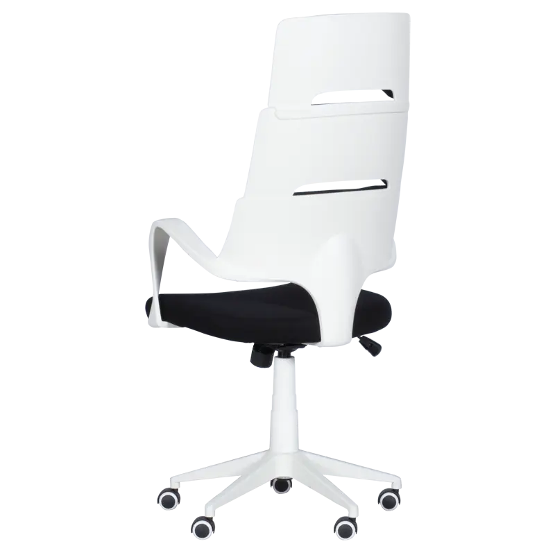 Директорски стол ИЧЕРА приковава вниманието със своя модерен и нестандартен дизайн. Неговата голяма седалка, висока облегалка и извити подлакътници ще ви осигурят удобството, което заслужавате, а за още по-голям комфорт столът има функция за регулиране на височината и люлеещ механизъм.