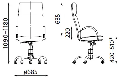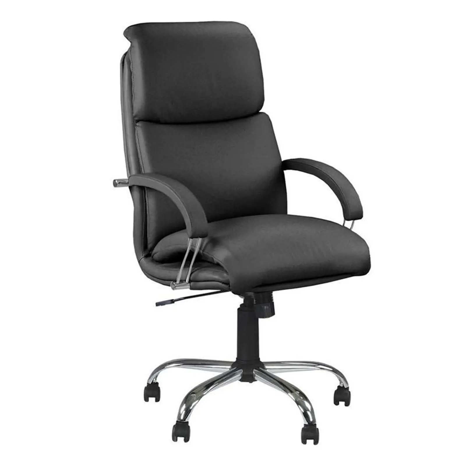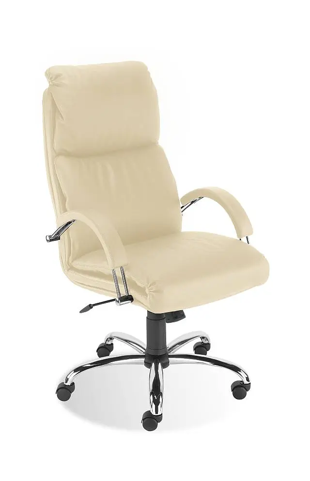 Директорски стол NADIR е със здрава метална основа с хромирано покритие. Плавно и безстепенно регулиране на височината. Моделът е с механизъм TILT, осигуряващ функцията люлеене и заключване в изходна позиция. Седалката и облегалката са тапицирани в еко кожа в черен цвят.