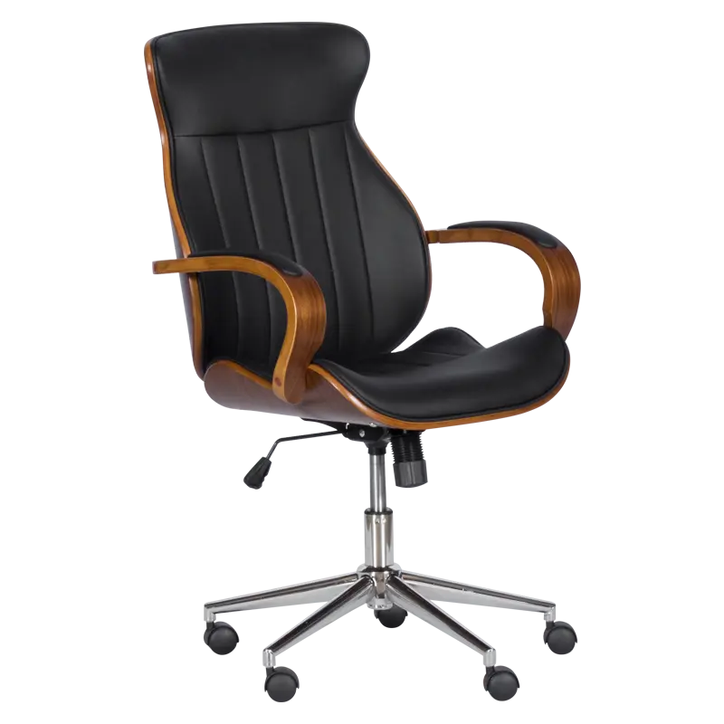 Директорски стол ПИМЕН е удобен и стилен модел с луксозен дизайн, който съчетава дърво, хром и черна еко кожа. Ако търсите елегантна визия, комфорт и висококачествена изработка, той е идеалният избор.