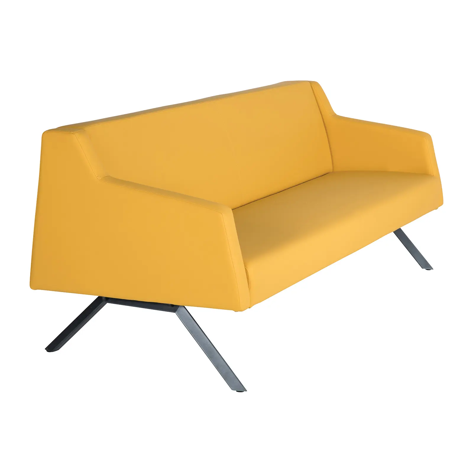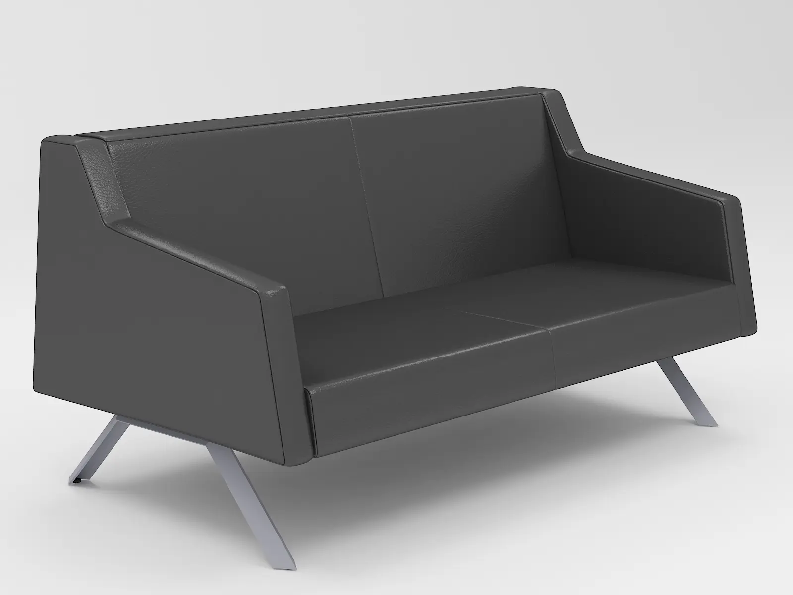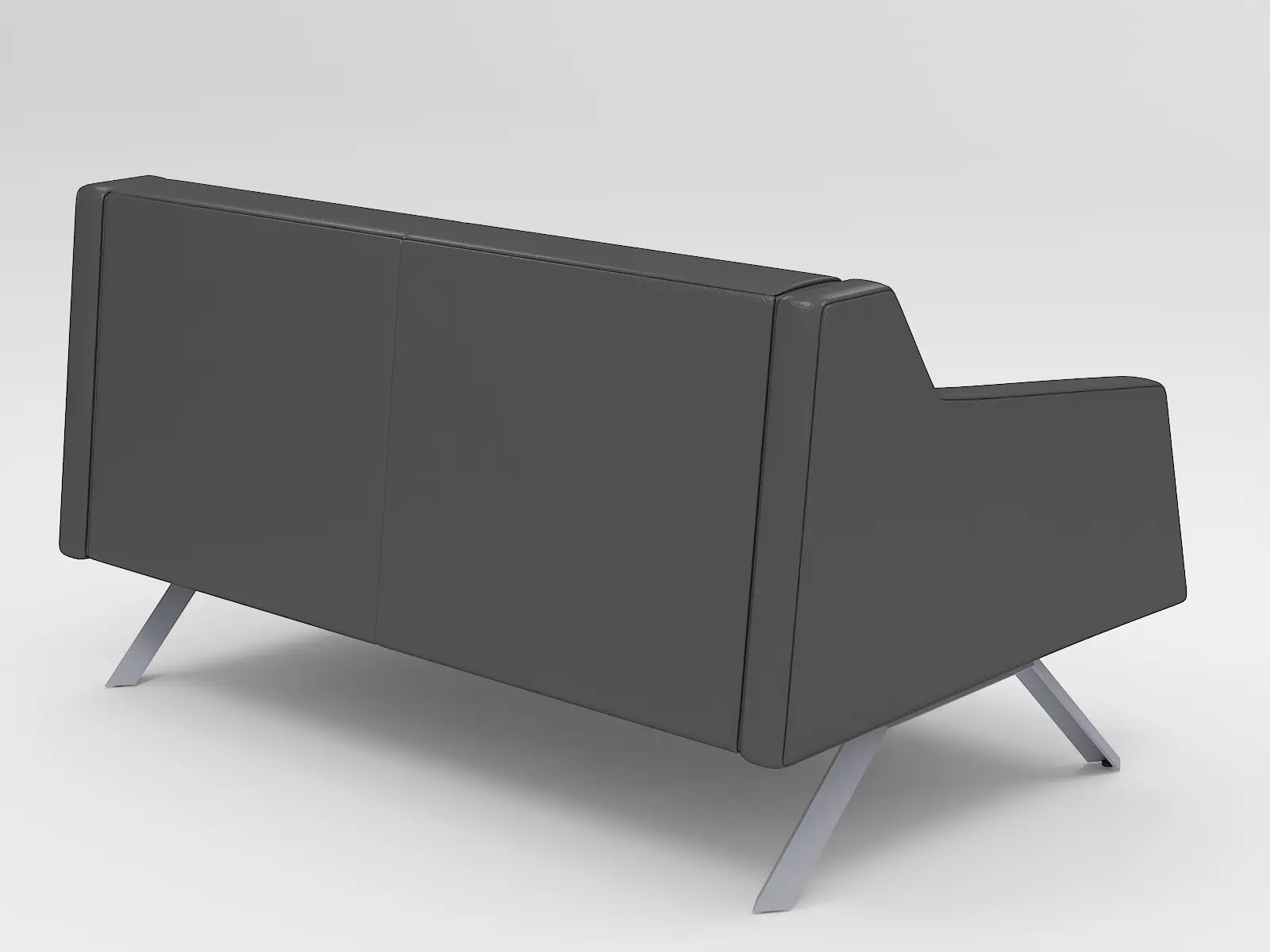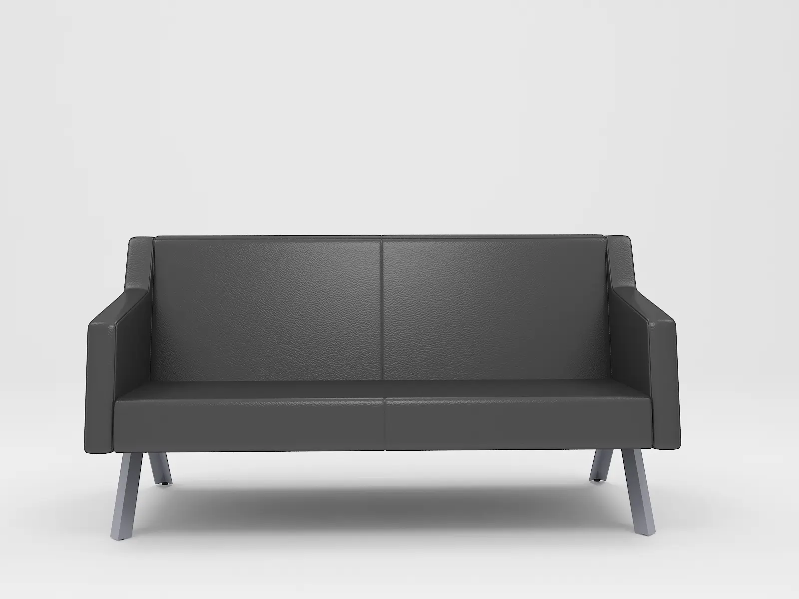 Диван двуместен ПИРОТ KUKA 02 е с модерен геометричен дизайн, широка облегалка за максимален комфорт и разчупени тапицирани подлакътници със заоблени краища.