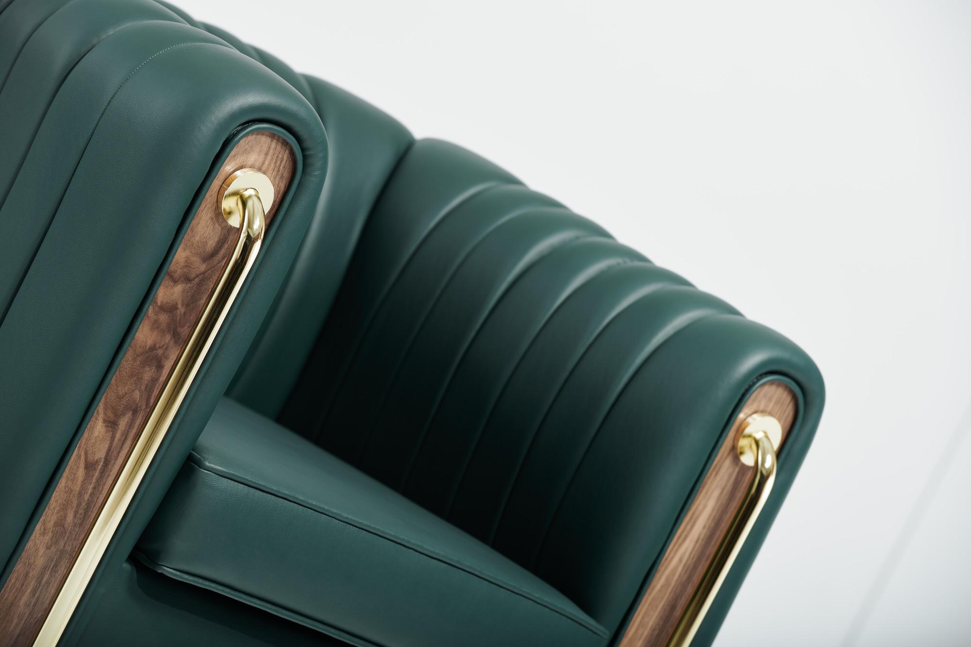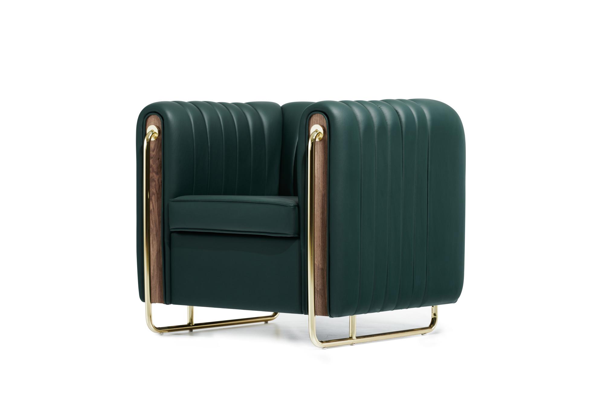 Едноместният диван СТРУГА внася едновременно чувство за уют и лукс по необикновен начин. Ретро нотката в дървените детайлите допълва неговото присъствие в помещението. Краката му са изработени от хромирана стомана в златист цвят и завършват с идеален почерк изискаността на дивана.