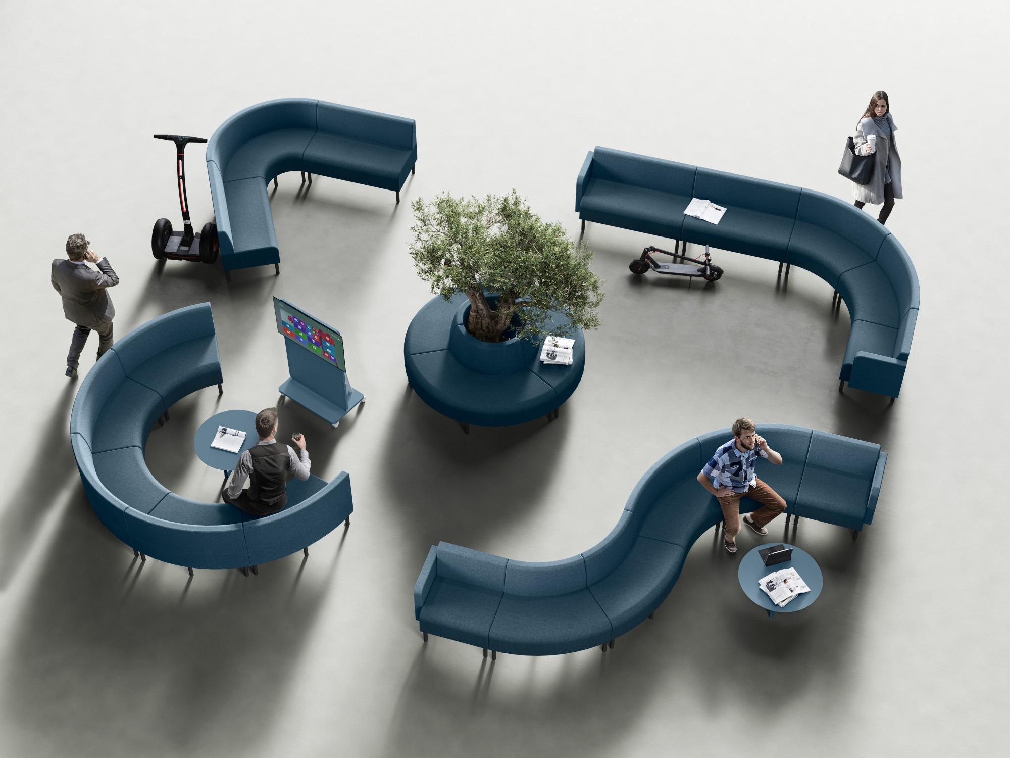 Модулният диван Trailer е проектиран за зони за чакане, салони, гостоприемство, работа и многофункционални пространства. Характеризира се със своите линии, криволичещ и геометричен. Неговите модули, могат да се комбинират свободно, което ви позволява да създавате линейни или извити композиции до достигане на перфектна кръглост.