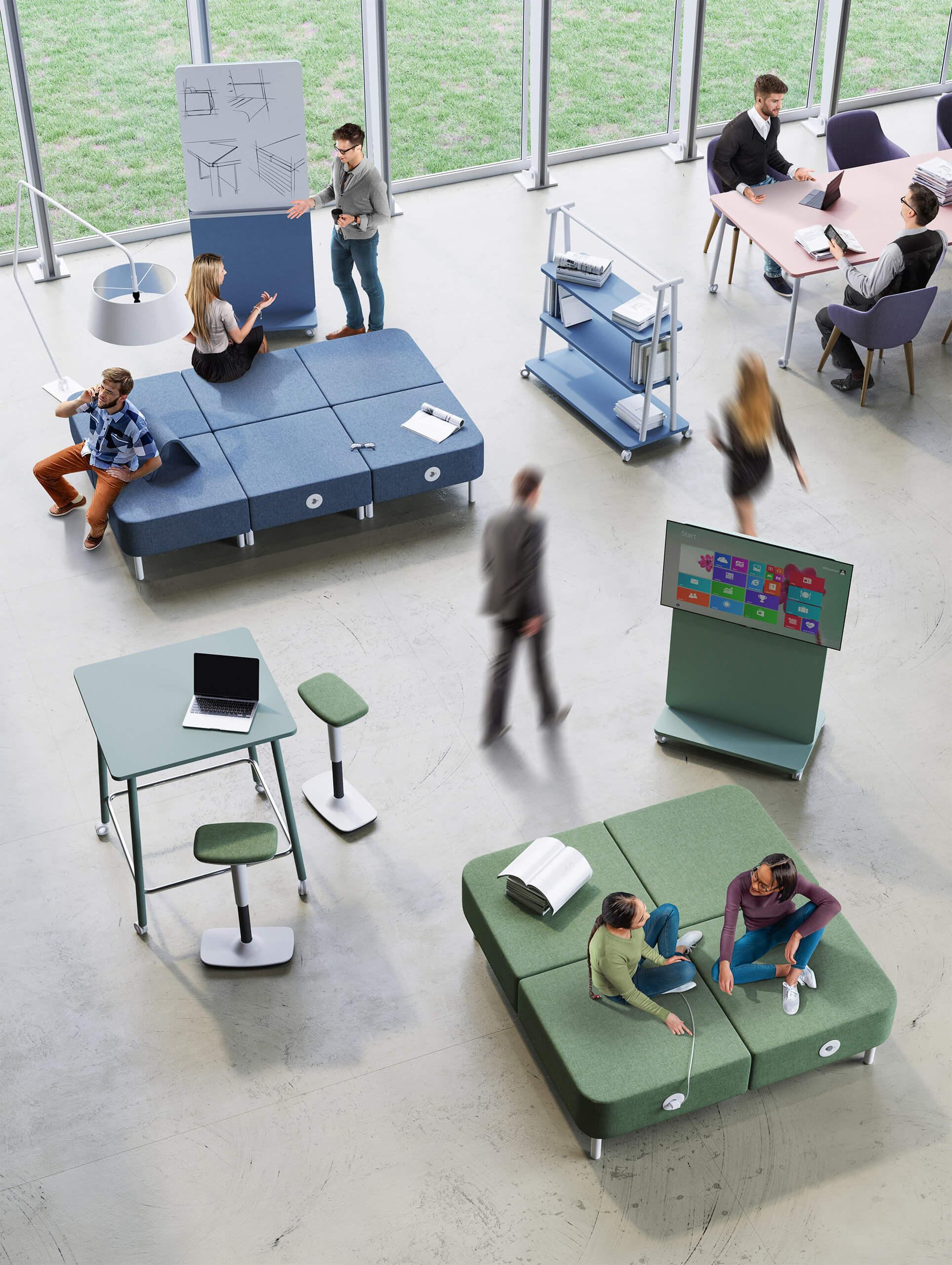 Модулният диван WORKLAND е ново и революционно предложение за офиса. Иновативен остров, позволяващ свободна работа и споделяне на опит. Интелигентна "седалка", която позволява множество употреби едновременно, за да работите свободно. С Workland може да работите седнали или легнали, или прото да релаксирате зареждайки себе си и устройствата си. Модулният продукт позволява множество композиции, с които да уплътните своето офис пространство.