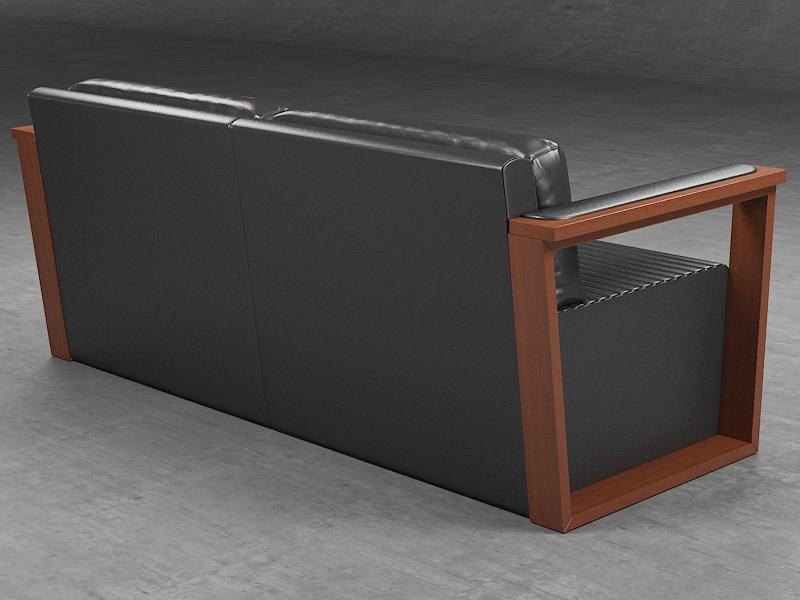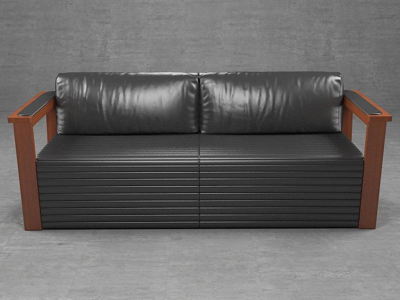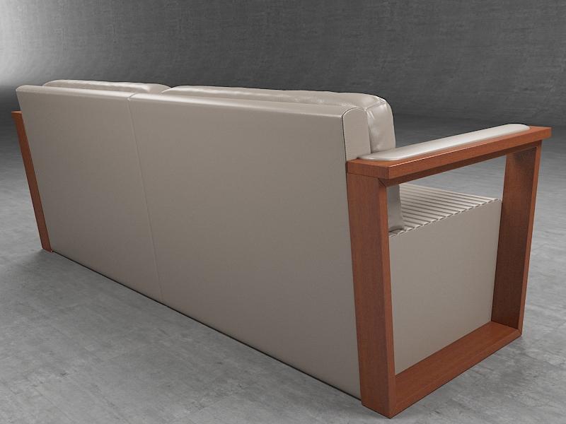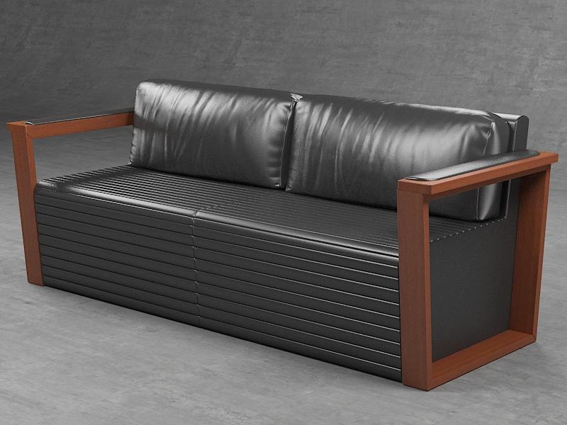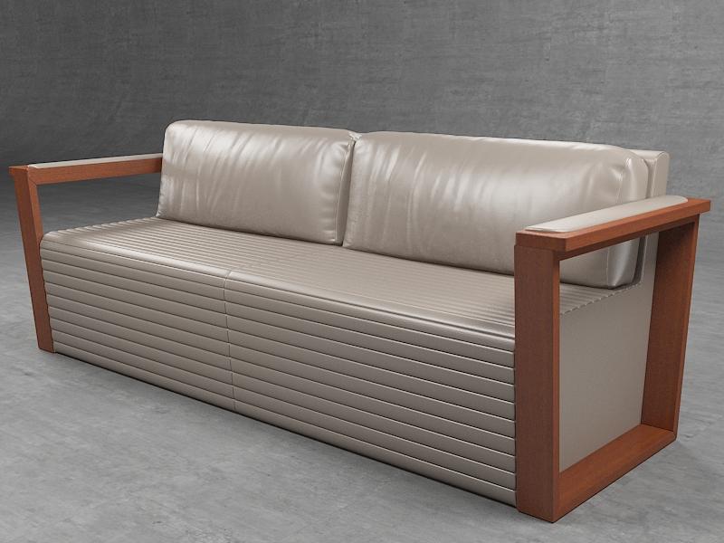 Диван триместен ДРАМА NORMA 03 със седалка декорирана с хоризонтални линии, дървени подлакътници с меки кожени падове.