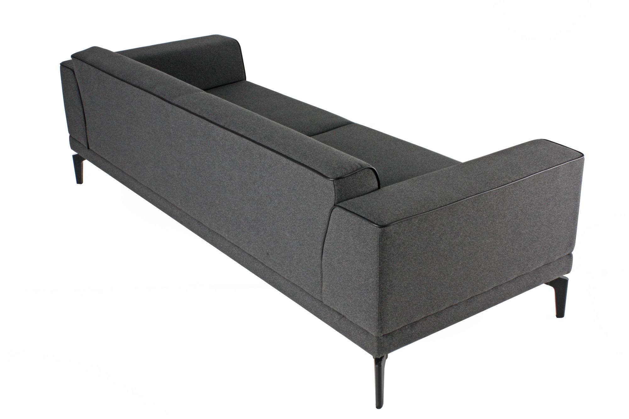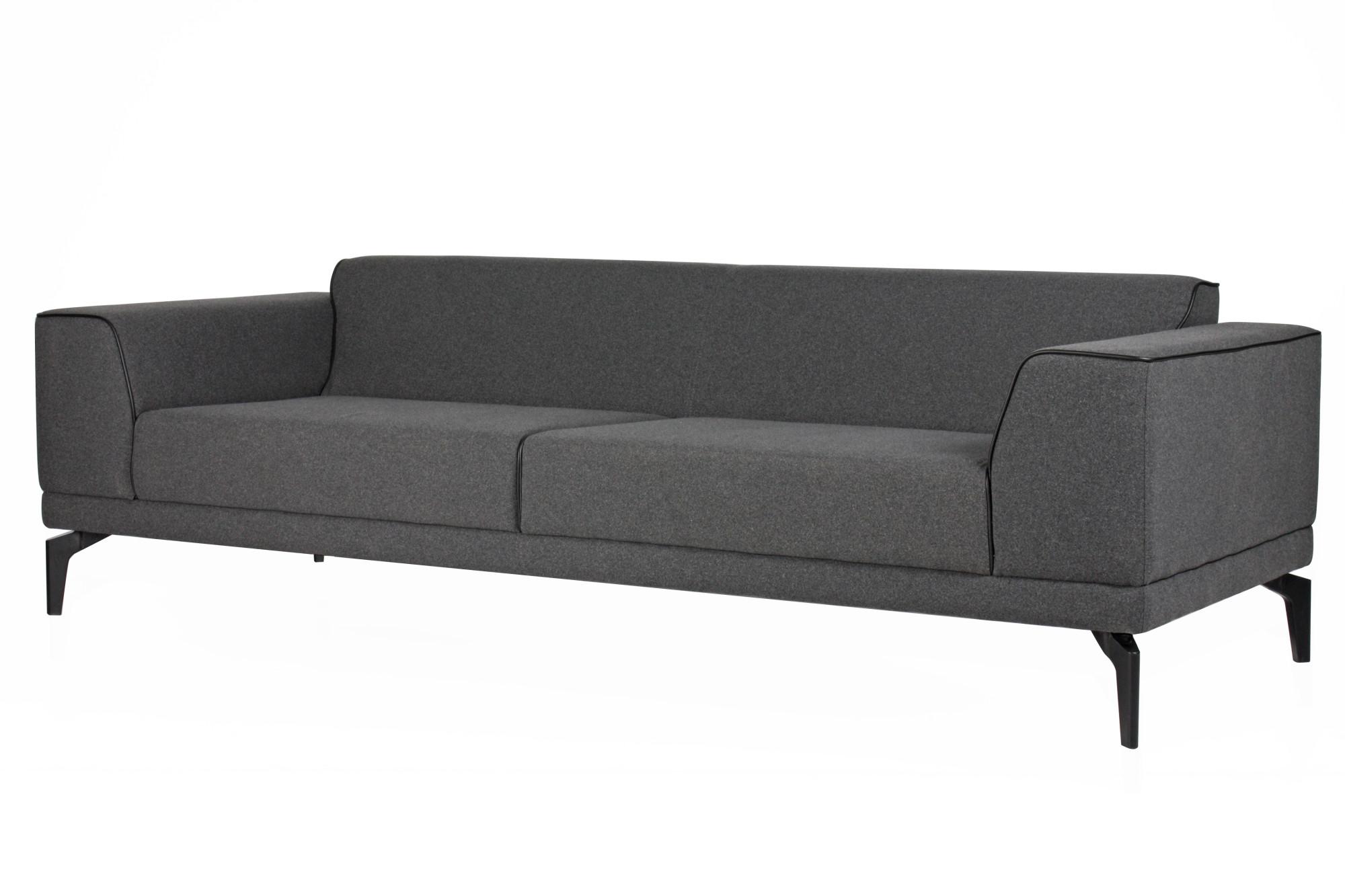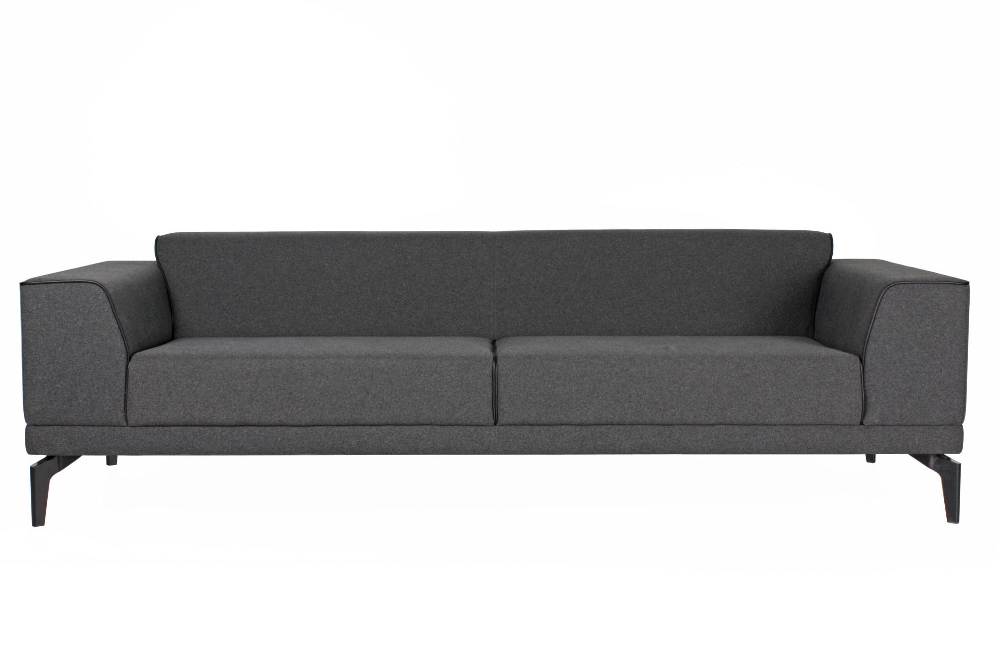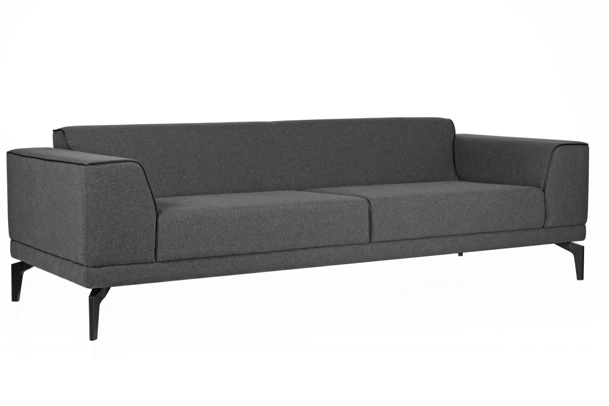 - Триместен диван с изчистен дизайн, широки подлакътници и цветен кант