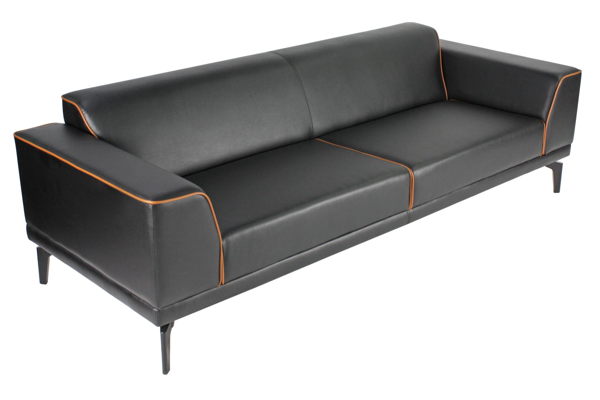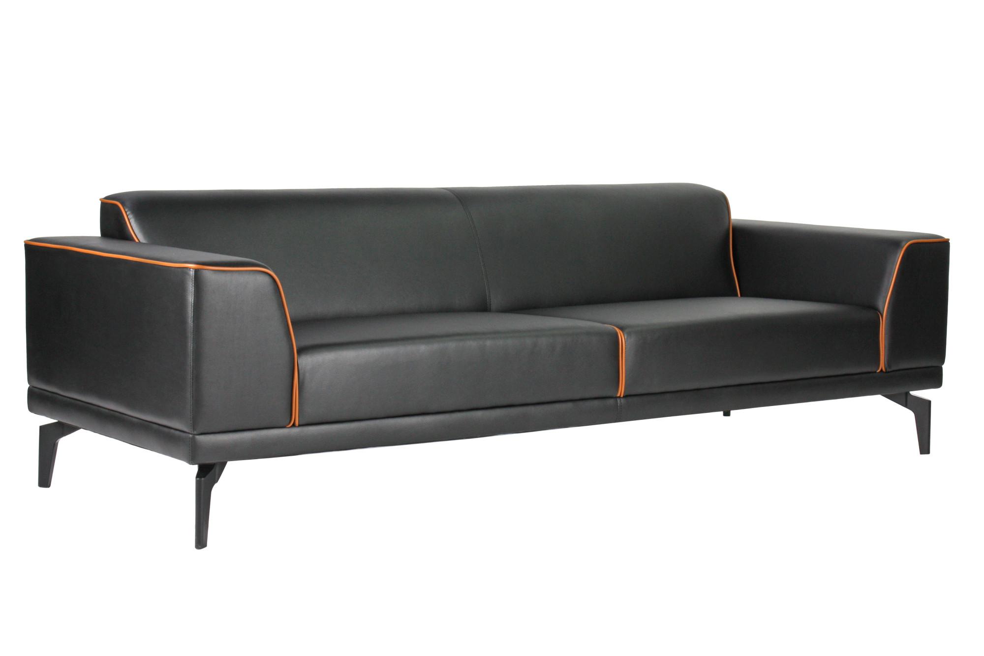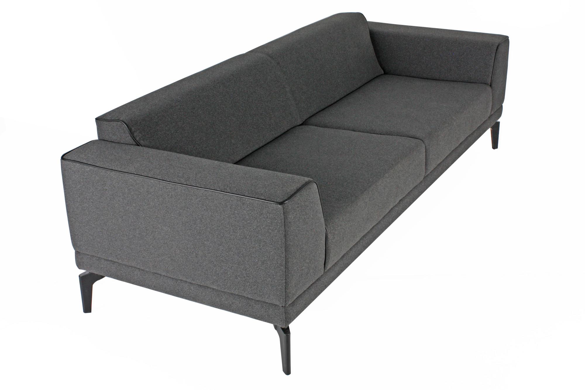 - Триместен диван с изчистен дизайн, широки подлакътници и цветен кант