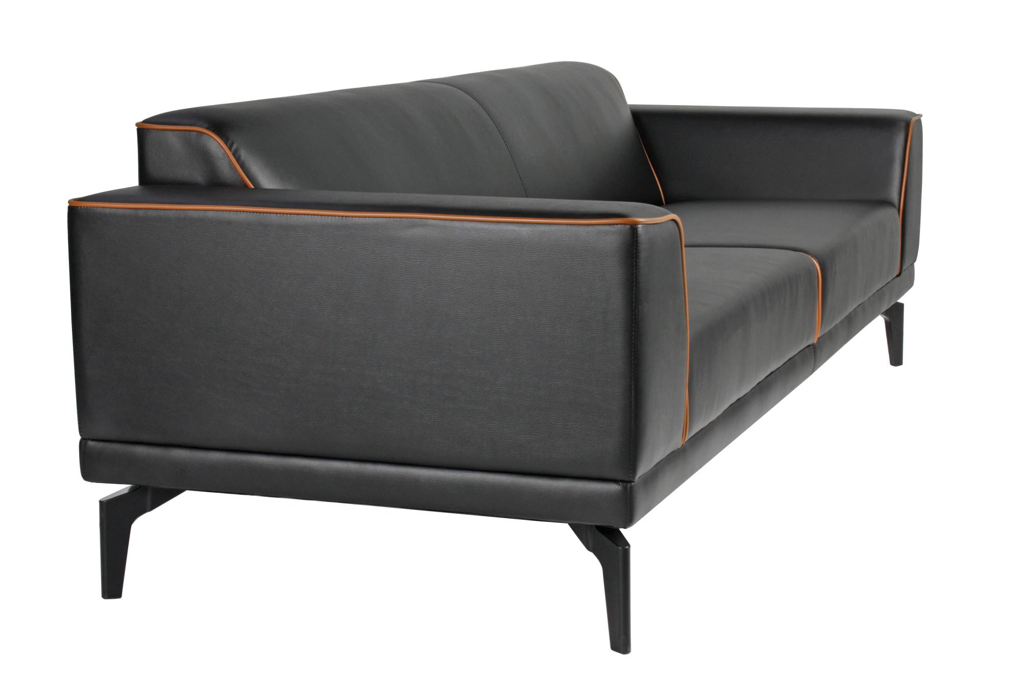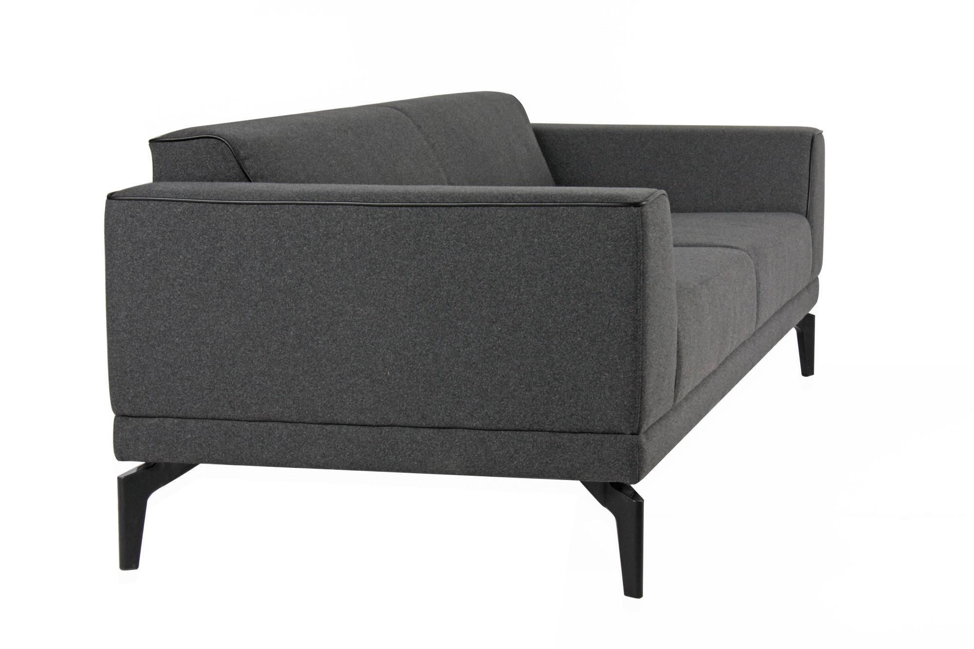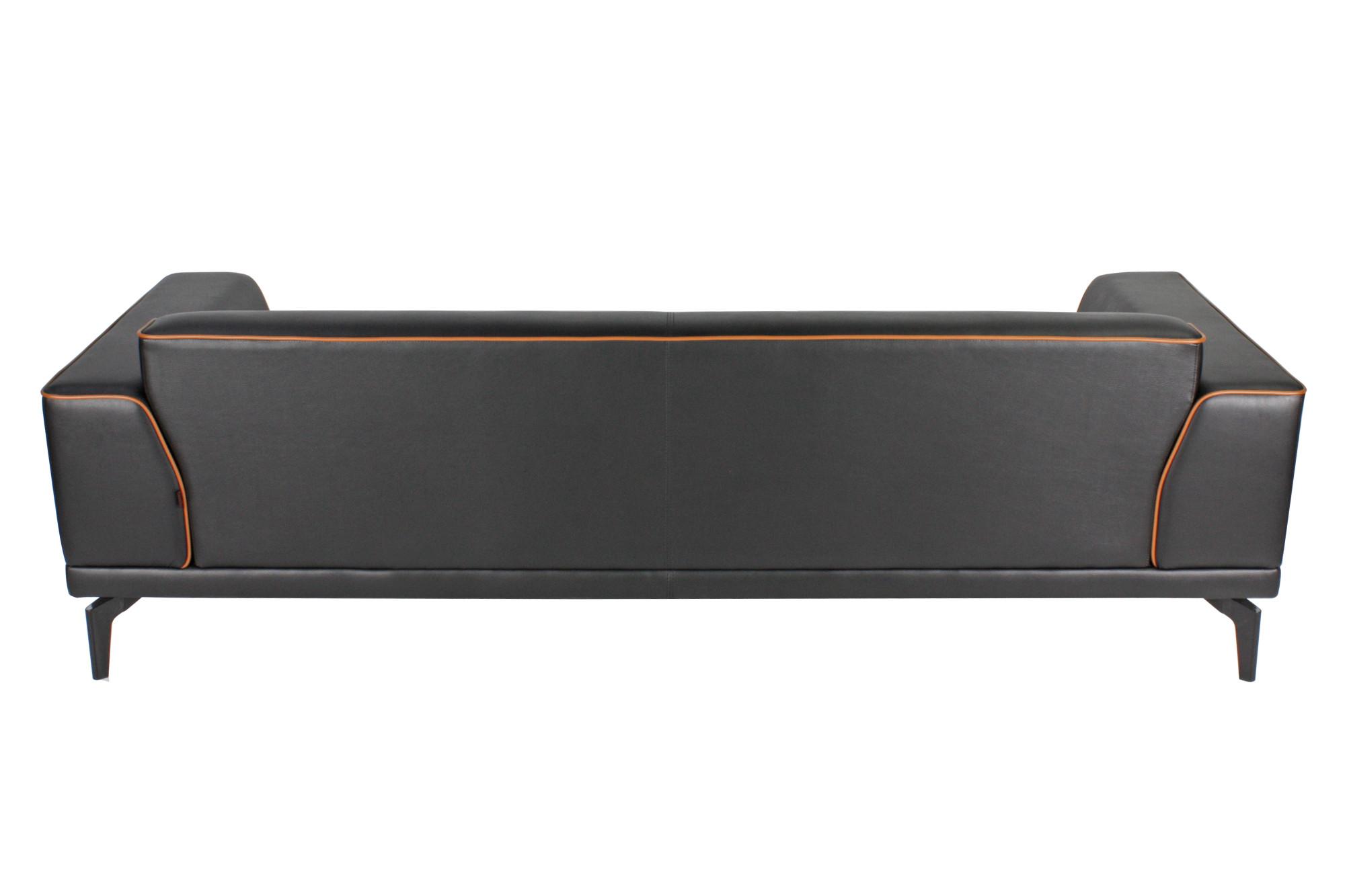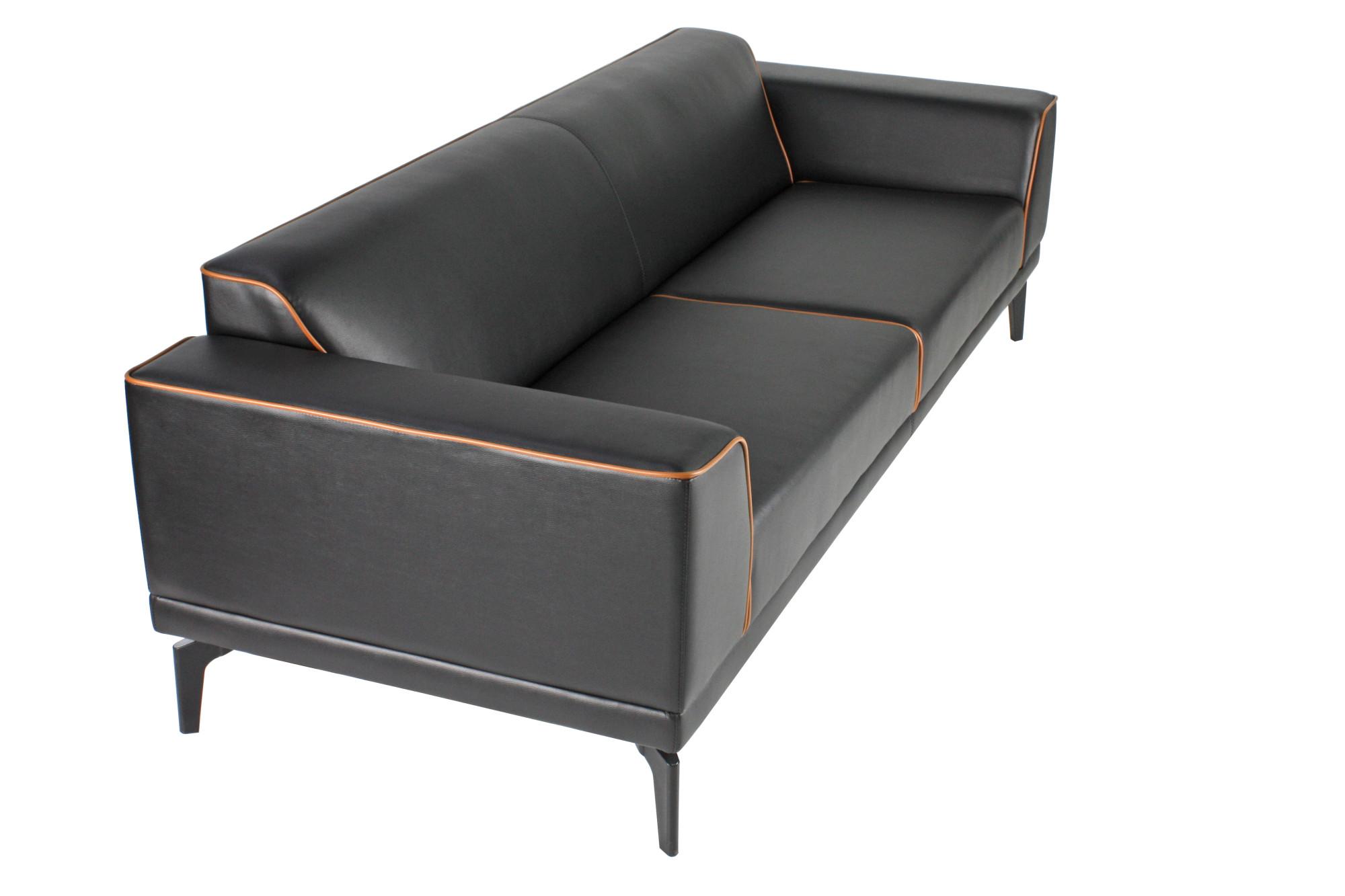 - Триместен диван с изчистен дизайн, широки подлакътници и цветен кант