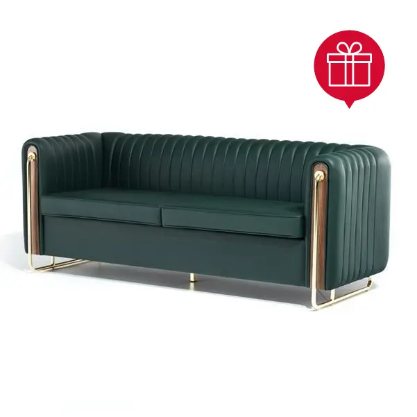 Триместният диван СТРУГА внася едновременно чувство за уют и лукс по необикновен начин. Ретро нотката в дървените детайлите допълва неговото присъствие в помещението. Краката му са изработени от хромирана стомана в златист цвят и завършват с идеален почерк изискаността на дивана.