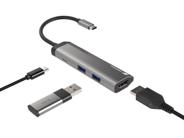 Докинг станция Natec Fowler Multiport Adapter 4 in 1, 2xUSB 3.0 HUB, HDMI 4K, USB-C PD, Slim