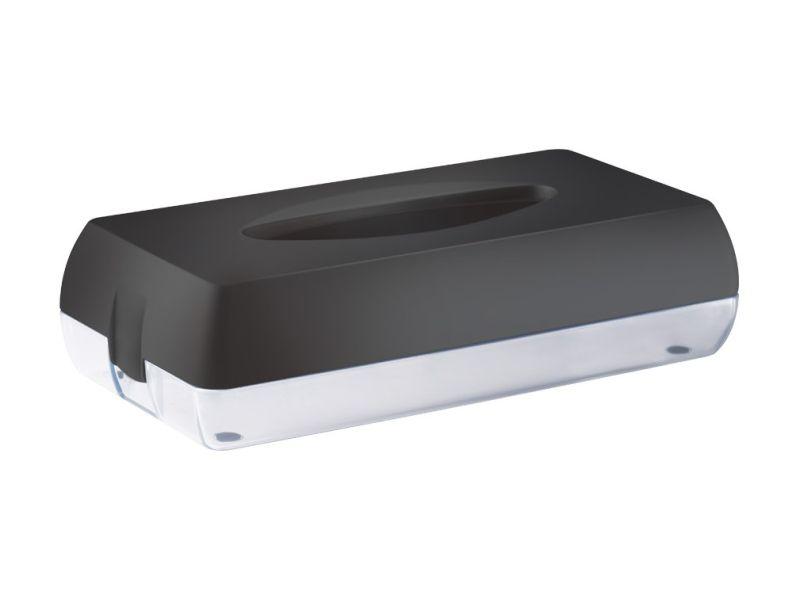 Черен диспенсър за козметични кърпи за лице, калцуни, ръкавици и други продукти. Елегантен многофункционален контейнер за кърпички, произведен в Италия от висококачествени материали, идеален е във всяка среда. Салони за красота, медицински кабинети, клиники и козметици няма да могат без този практичен диспенсър, за да имат винаги налични кърпички и хартия, добавяйки дизайн и елегантност към околната среда.
