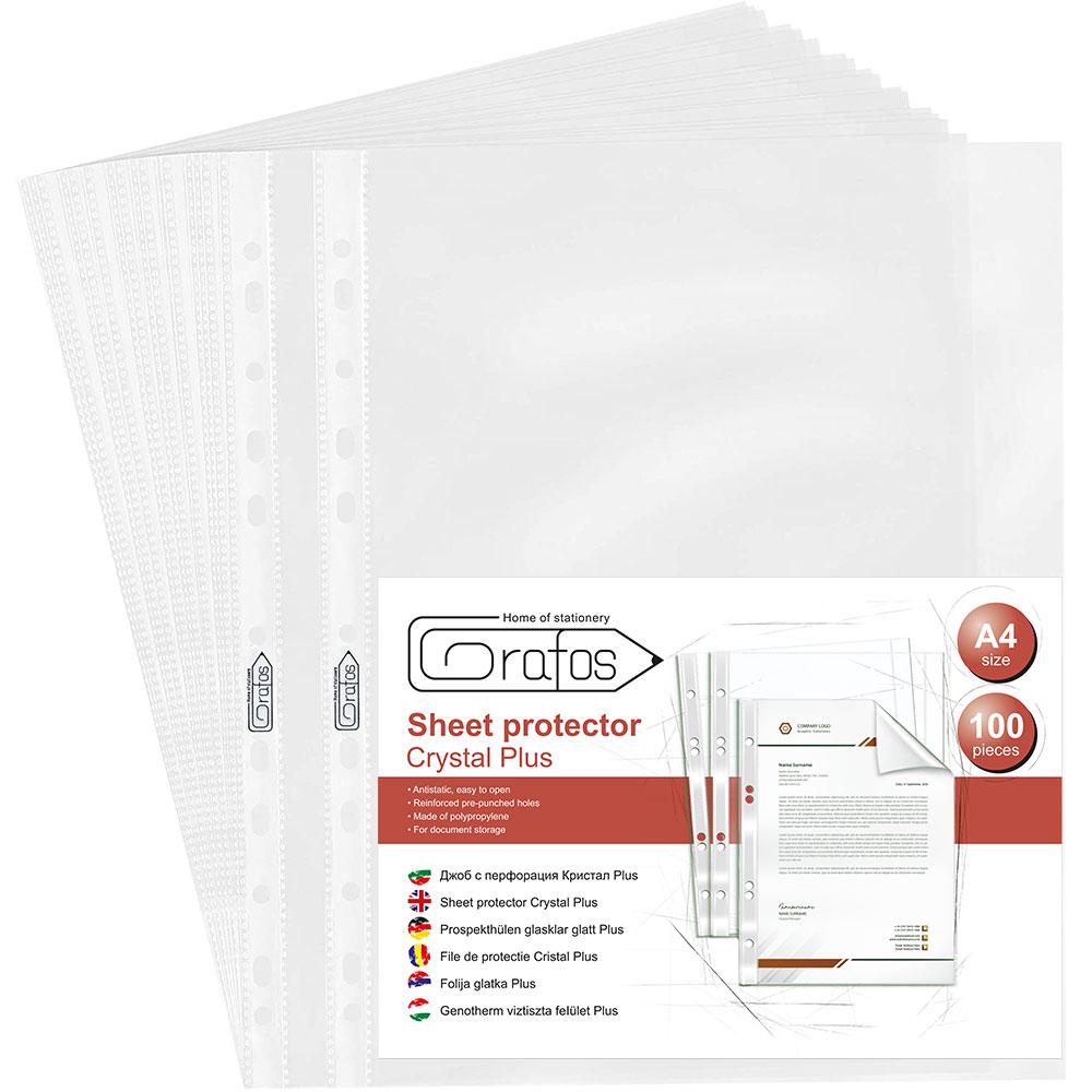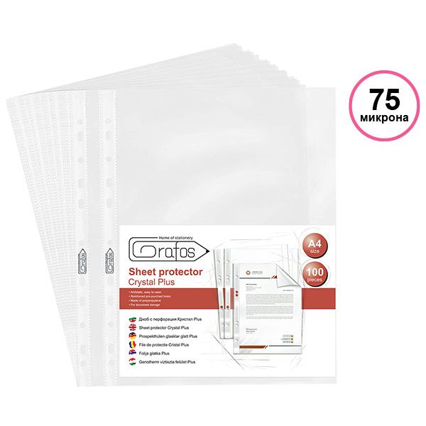 Джобът за документи A4 кристал 75 микр 100 бр е подходящ за всички папки и класьори, защото притежава универсална перфорация.