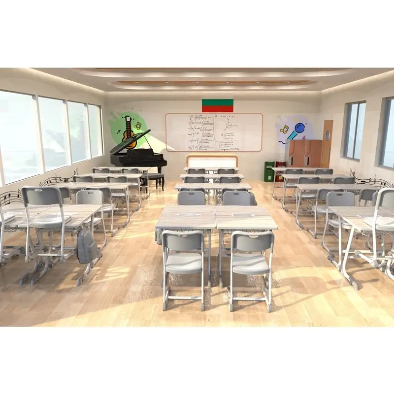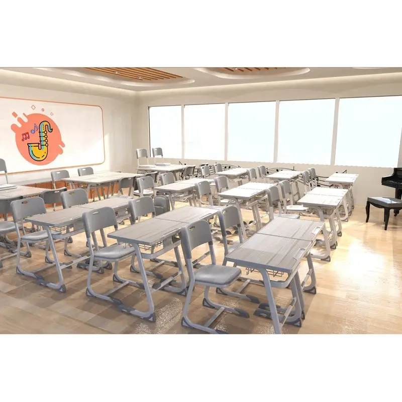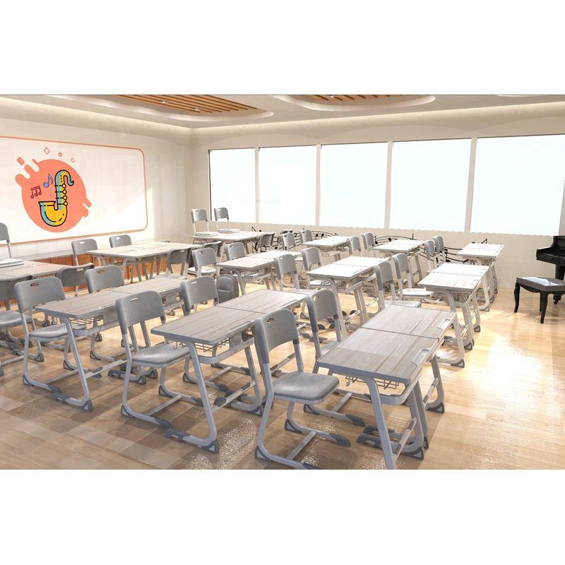 Ергономичният комплект e проектиран, за да осигури удобна учебна среда на всяко дете в процеса на растеж и развитие. Чинът има метална фиксирана кошница под плота за съхранение на учебни пособия и улей в предната част на плота за пишещи пособия.
